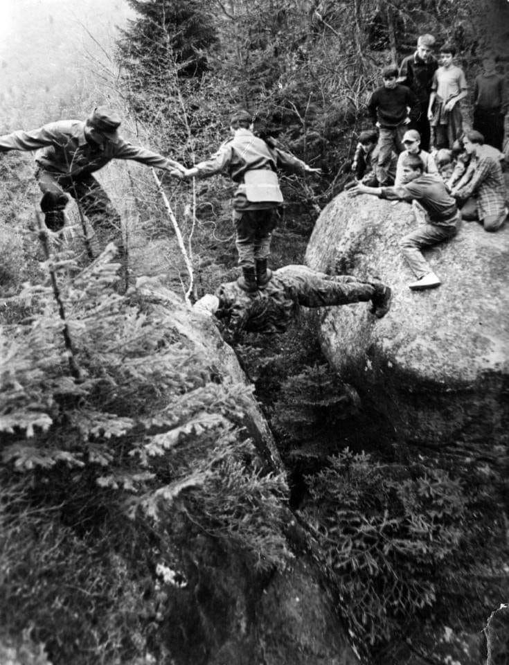 Коли юнаки не могли пройти через глибоке провалля поміж скель, я став на "місток" над проваллям і юнаки переходили по мені. Зате усі залишилися живі. А друг "Сокіл" на вечірній ватрі навіть подарував мені свій цукерок в знак подяки,