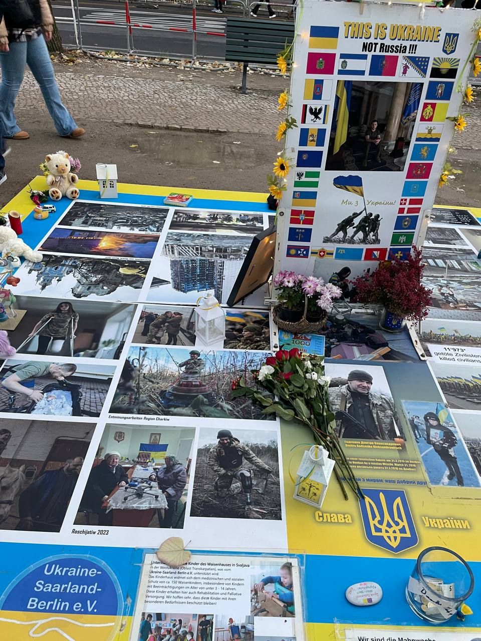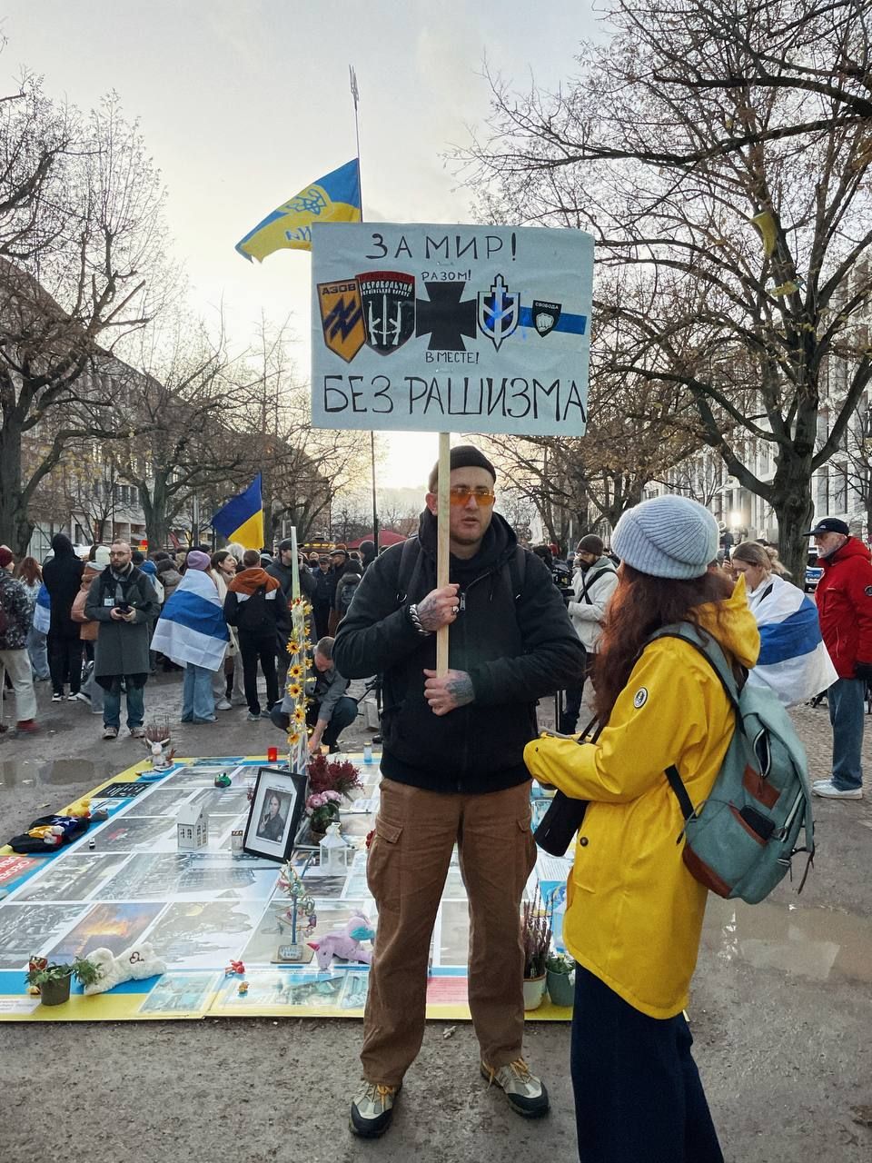 Українці також підготували плакати й облаштували меморіал з ушануванням пам'яті полеглих захисників України.