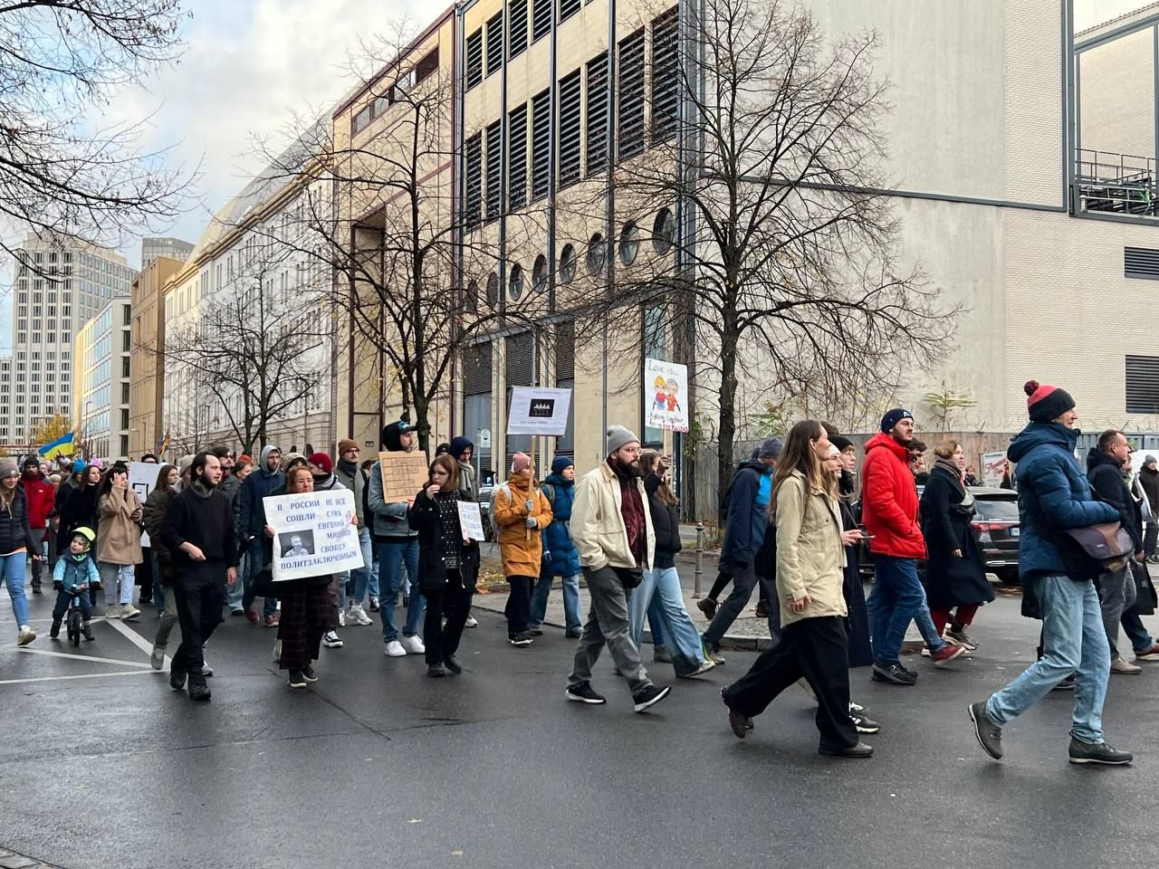 У Берліні 17 листопада понад тисяча людей взяли участь в антивоєнному марші російської опозиції. На початку колони були Юлія Навальна, Ілля Яшин, Владімір Кара-Мурза, Руслан Шаведдінов, Кіра Ярмиш, Кевін Лік, частина з яких були й організаторами.