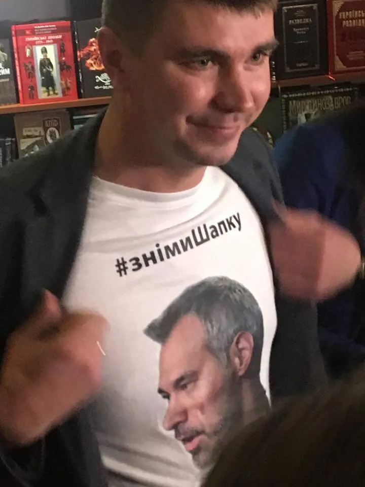 Поляков у футболці з портретом Рябошапки / Фото: Марії Писаренко (24 канал)