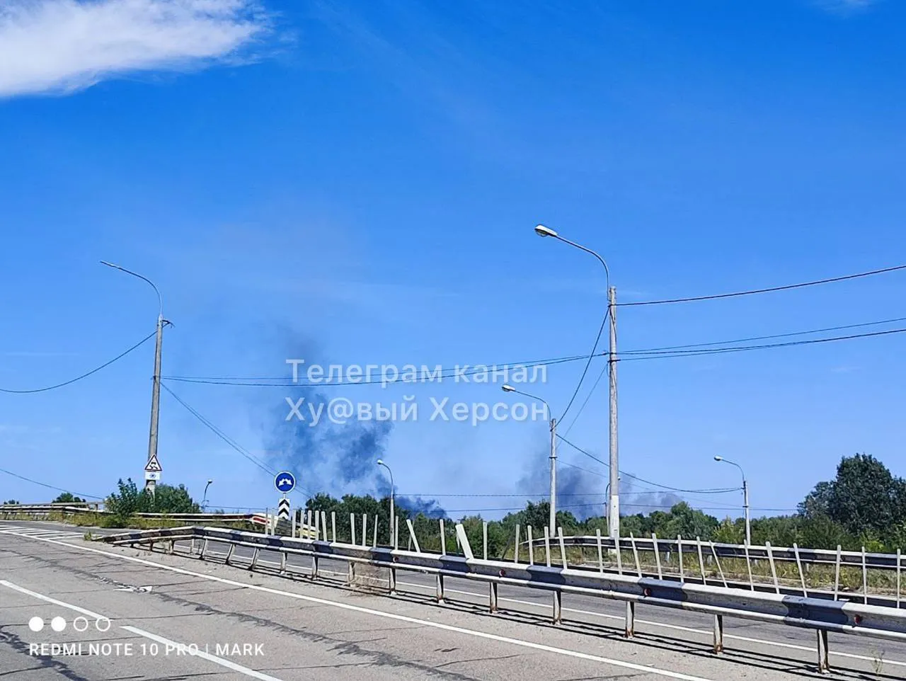 Біля Антонівського мосту видно густий чорний дим / фото телеграм "Ху**ий Херсон"