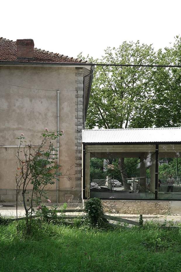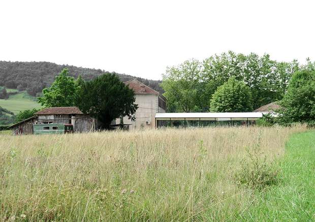 "Прозора" будівля ідеально вписується у навколишній ландшафт. Просторий засклений фасад обгородили і накрили дерев'яним дахом.