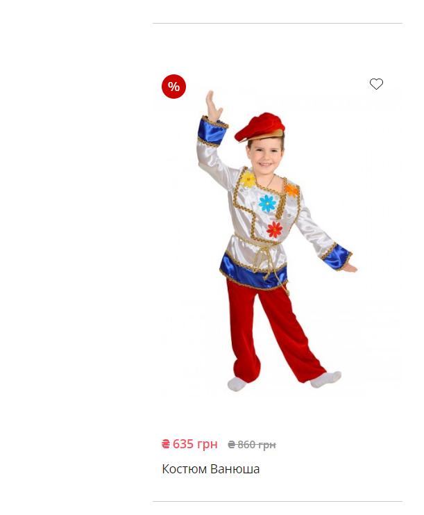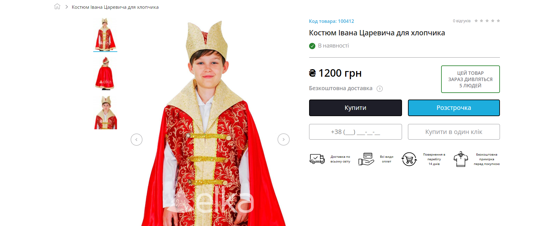 Також на сайті розміщені й інші сумнівні костюми. Переважно – це герої з російських казок. Що було досить дивним, то це костюм з російським орнаментом хохлома. А костюм "Ванюша" теж викликає дуже багато питань.