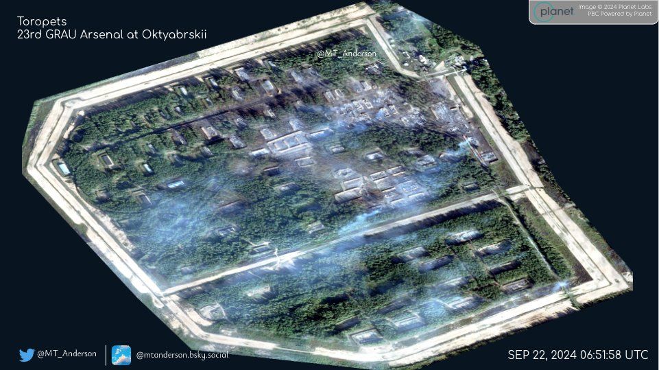 Наслідки атаки на 23-й арсенал ГРАУ / Супутникові зніми з X MT_Anderson