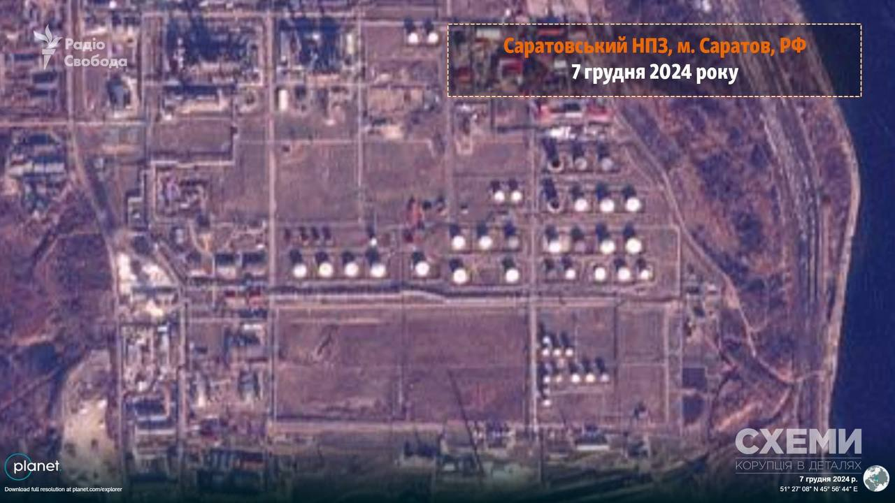 Українські дрони завдали ударів по щонайменше одному резервуару Саратовського нафтопереробного заводу. Це підтверджується супутниковими фото Planet Labs, зробленими 14 січня.