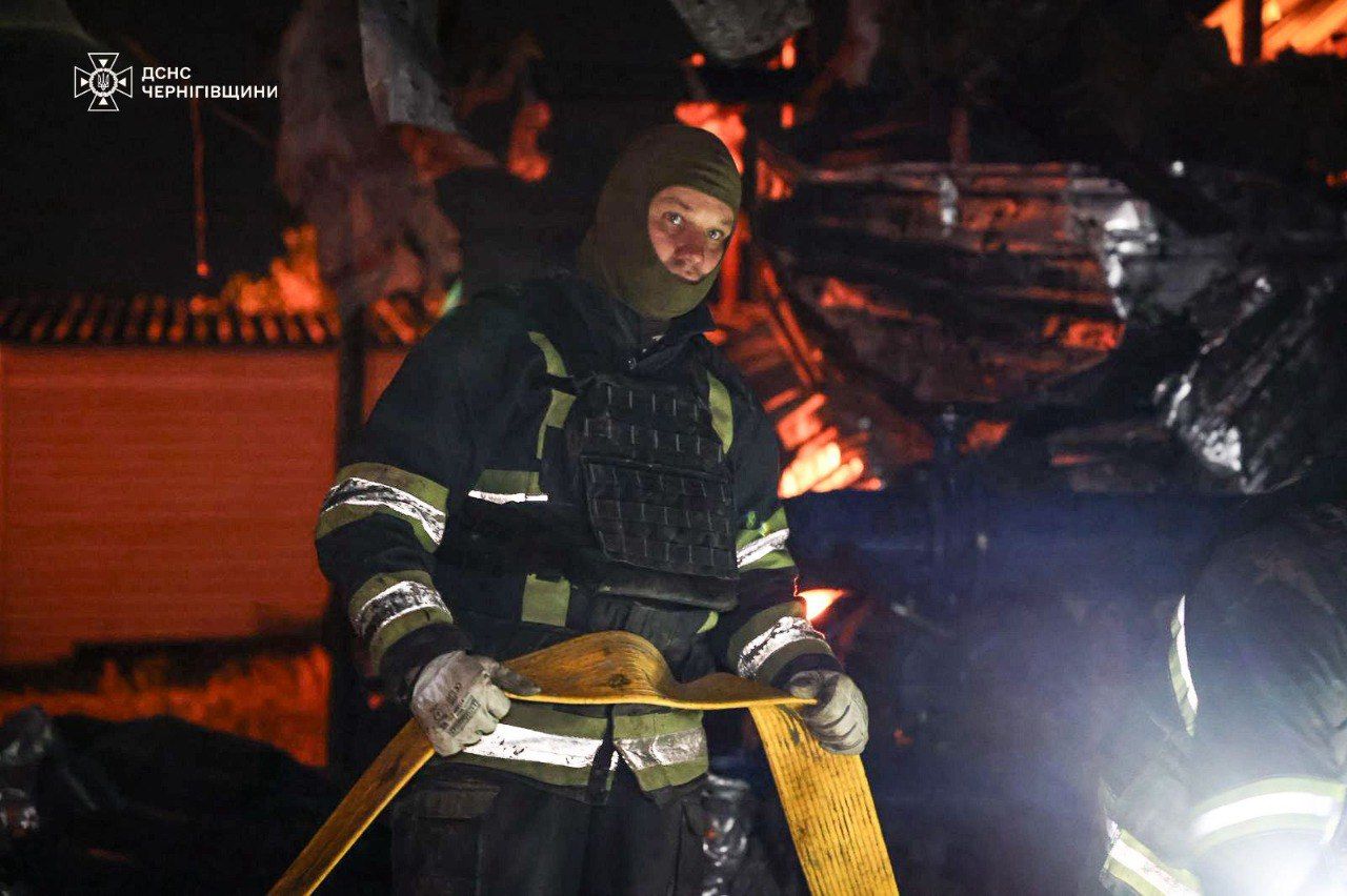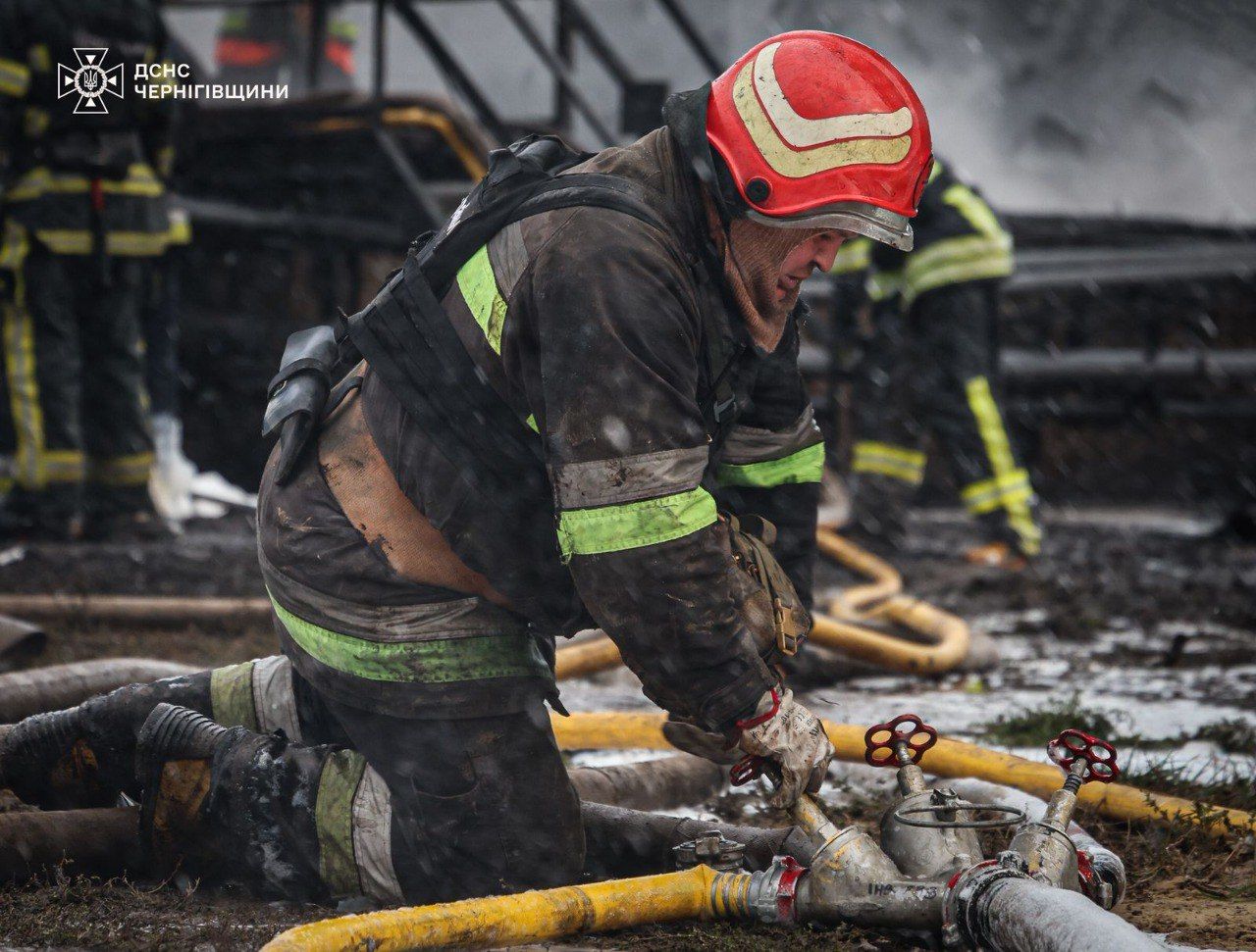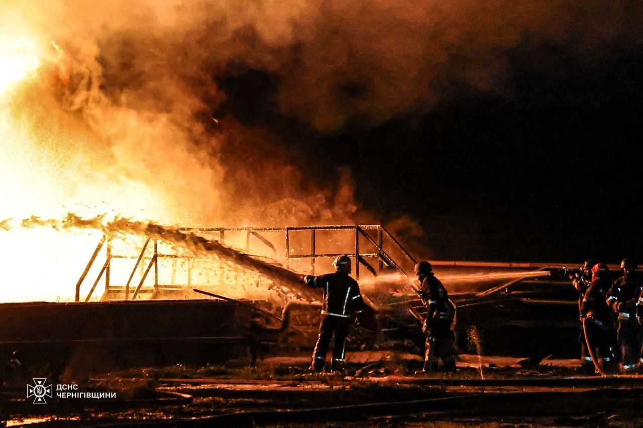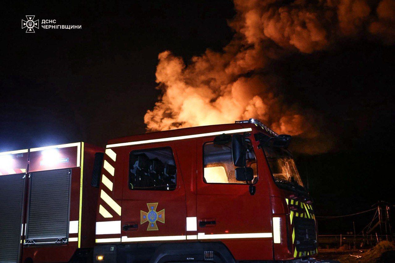 У Ніжинському районі чотири дрони влучили в нафтобазу, внаслідок чого там почалася пожежа. Рятувальники ліквідували займання, обійшлося без постраждалих.
