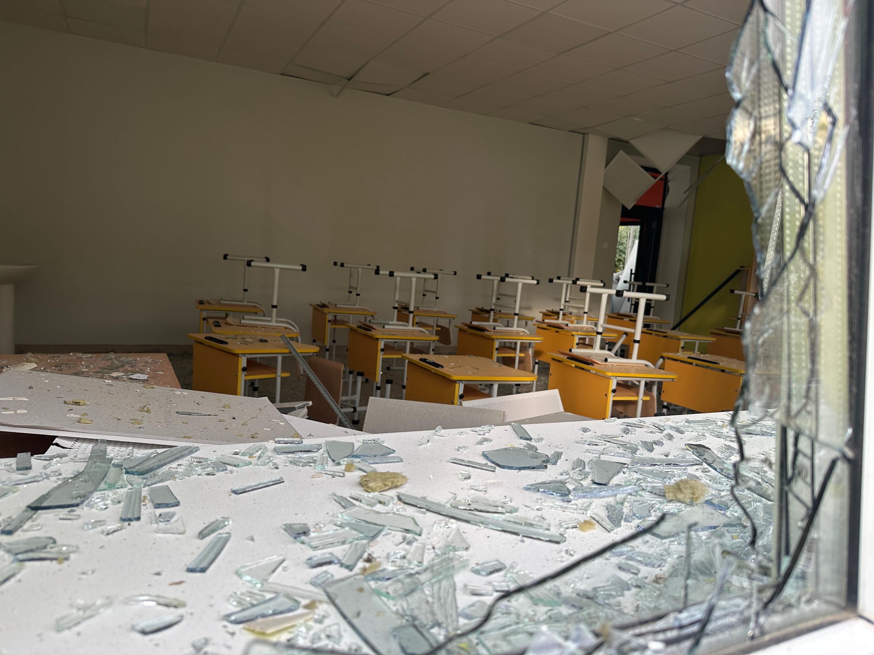 Навколо школи пошкоджено будинки. У приватному секторі та багатоповерхівках вибиті вікна і зруйновані дахи.