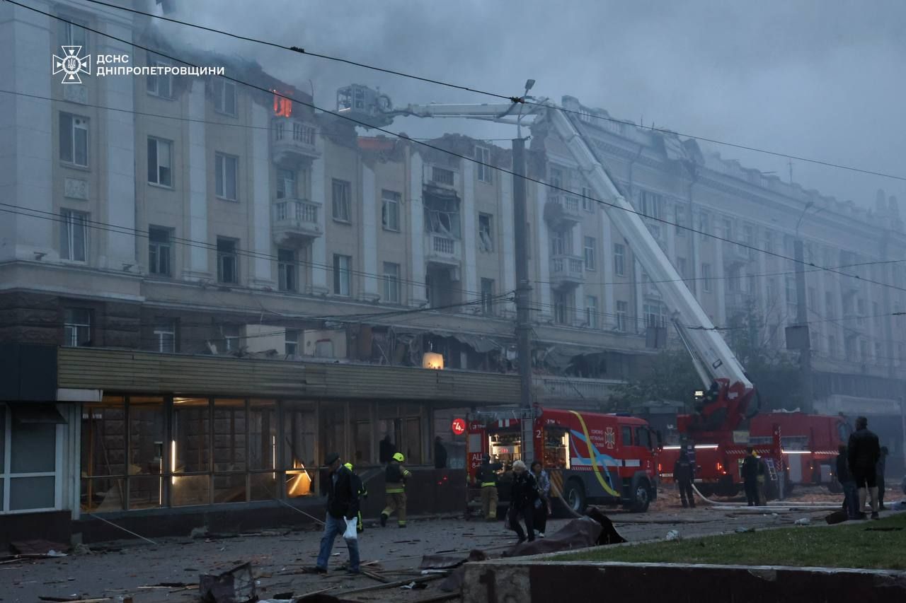 Станом на 11:00 у Дніпрі відомо про 2 загиблих і 24 поранених. В ОВА повідомляють, що близько половини поранених у стані середньої тяжкості. Вони зазнали осколкових поранень, переламів, гематом, різаних ран, й нині госпіталізовані. На місцях також працюють психологи, які допомагають боротися зі стресом.