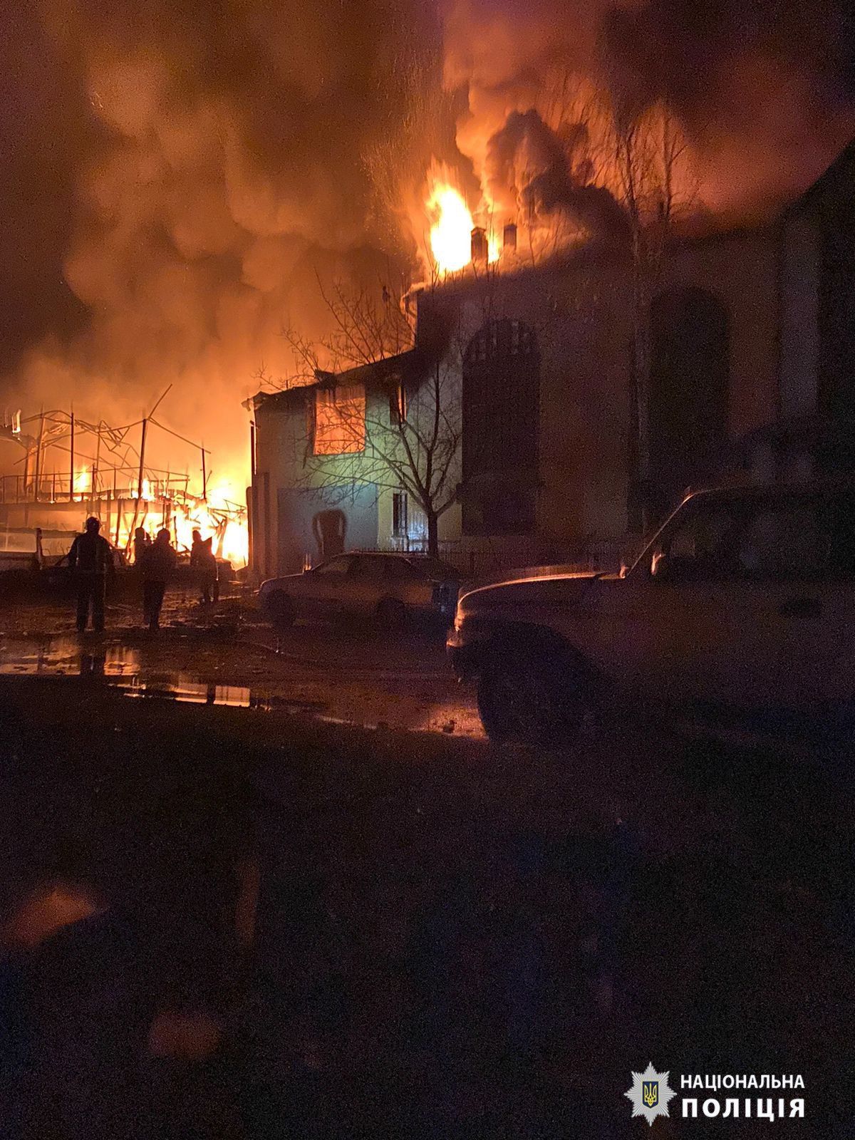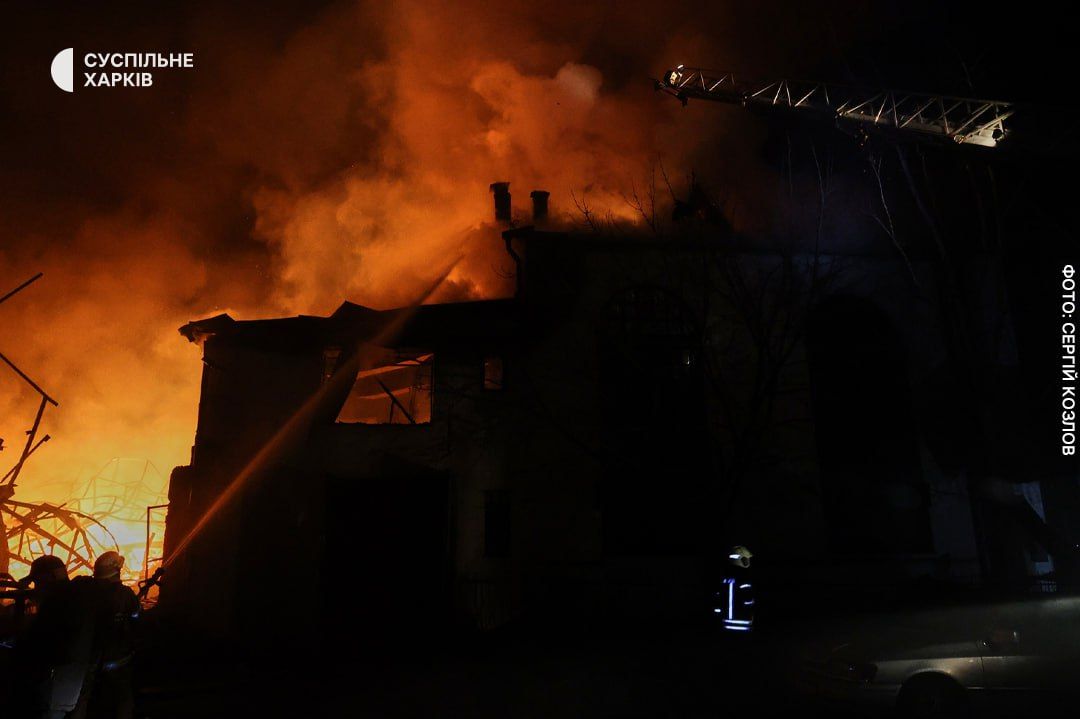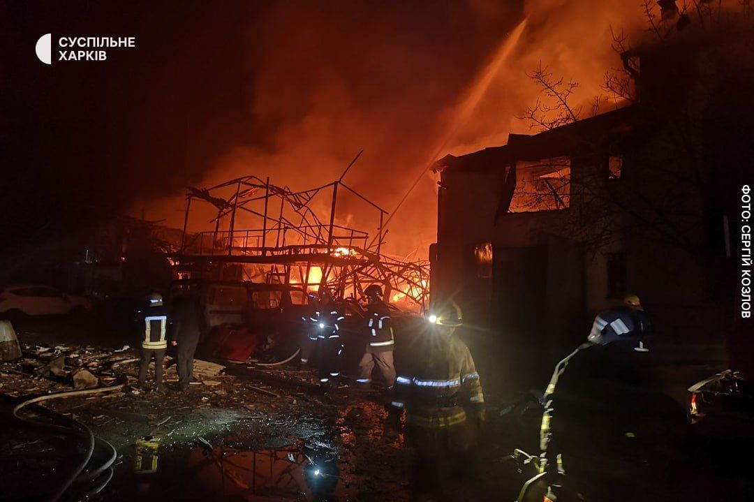 У поліції Харківської області розповіли, що щонайменше 10 російських безпілотників вдарили по цивільній інфраструктурі міста. У Харкові спалахнуло 5 пожеж.