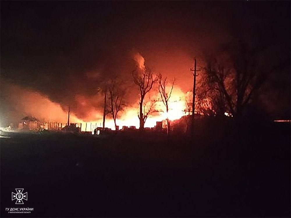 Повідомляється, що внаслідок влучання в Баштанському районі Миколаївщини пошкоджено склади сільськогосподарського підприємства та будівлю магазина. На місці почалась пожежа – рятувальники її вже ліквідували.