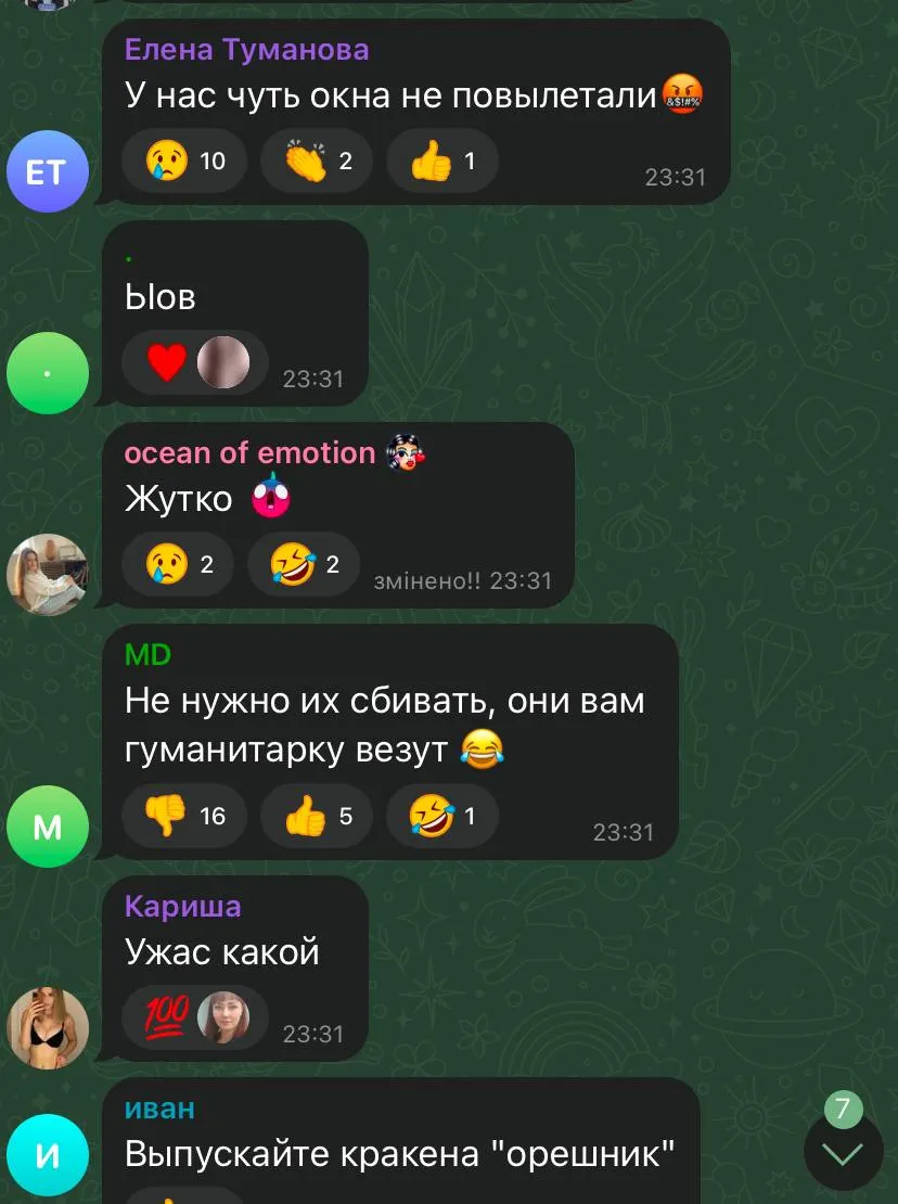 Жителі бідкаються, мовляв "це було гучно", "в нас ледь вікна не повилітали", "не заспокояться ніяк". Дехто в коментарях закликає до "удару у відповідь".