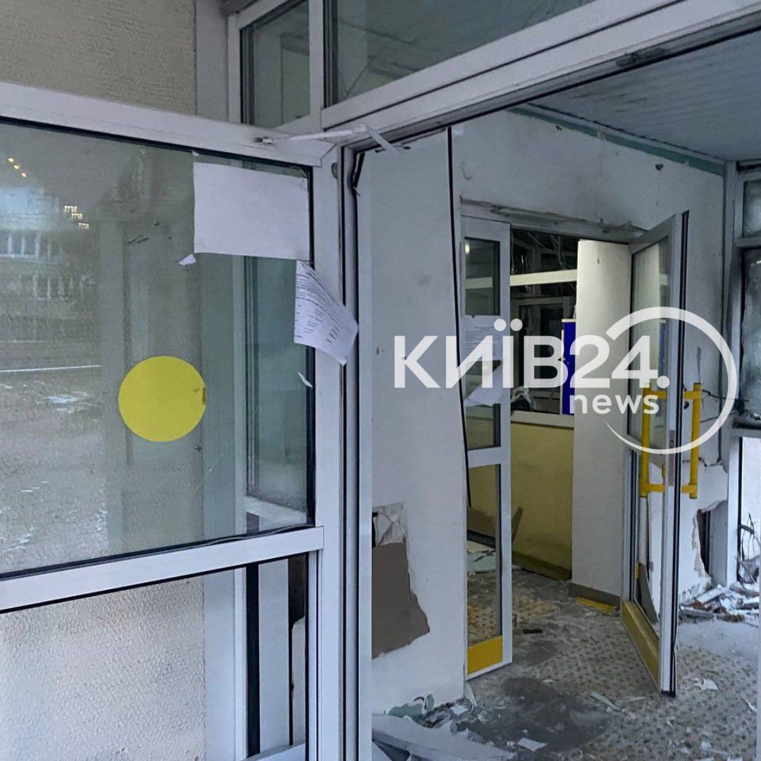 Поруч з ураженим медичним закладом виявлено пошкодження скління вікон і фасадних частин під’їздів у трьох багатоповерхових житлових будинках навколо.