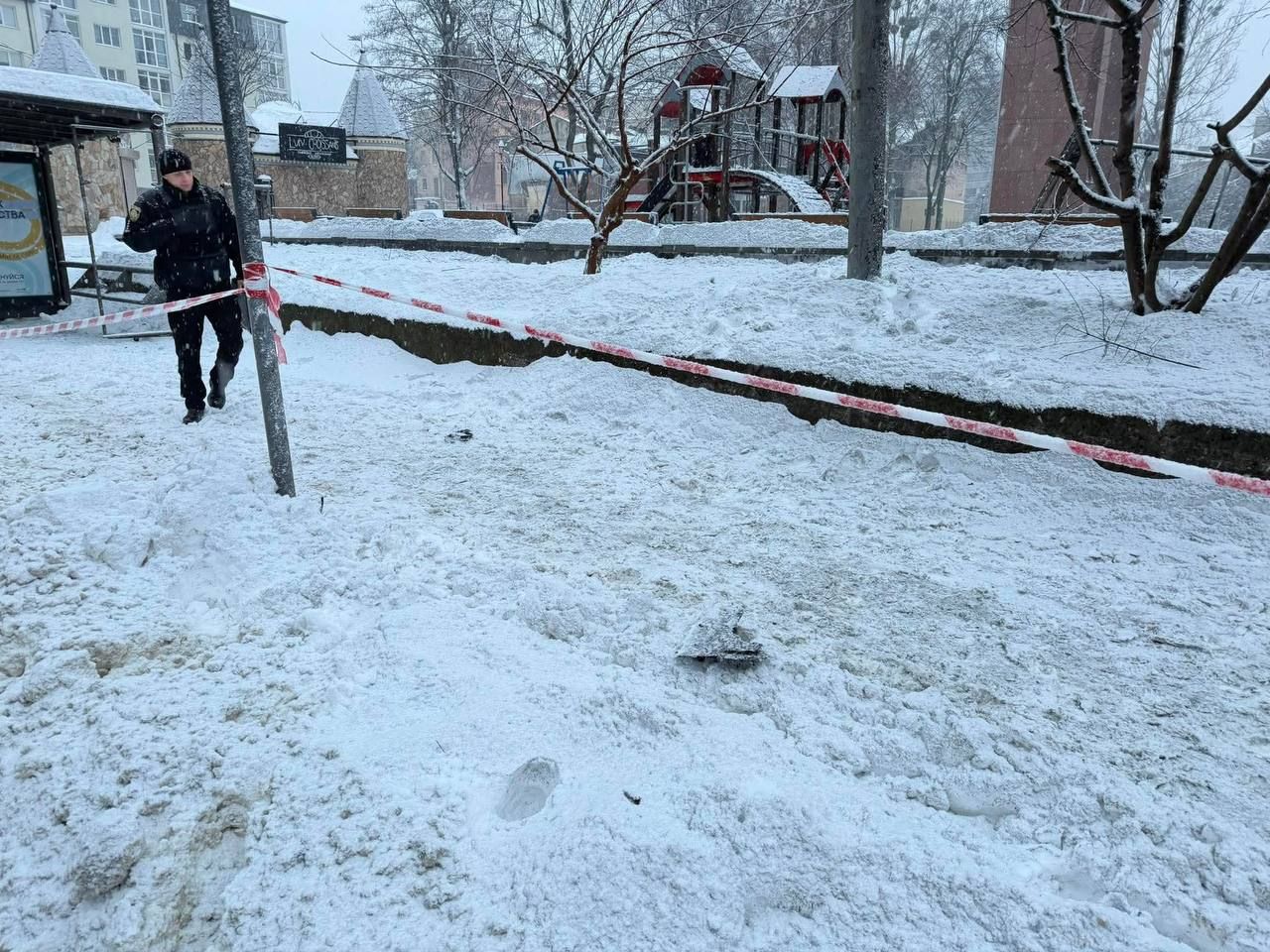 Про це розповіла ведуча 24 Каналу Ірина Узлова, яка присутня на місці події. Вона зазначила, що дрон пошкодив гойдалку на дитячому майданчику.