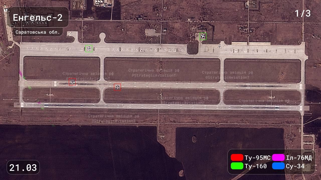 Як зауважують моніторингові канали, на момент, коли були зроблені знімки, а саме 21 березня о 10:05, на аеродромі були 2 Ту-160 та 2 Ту-95мс.