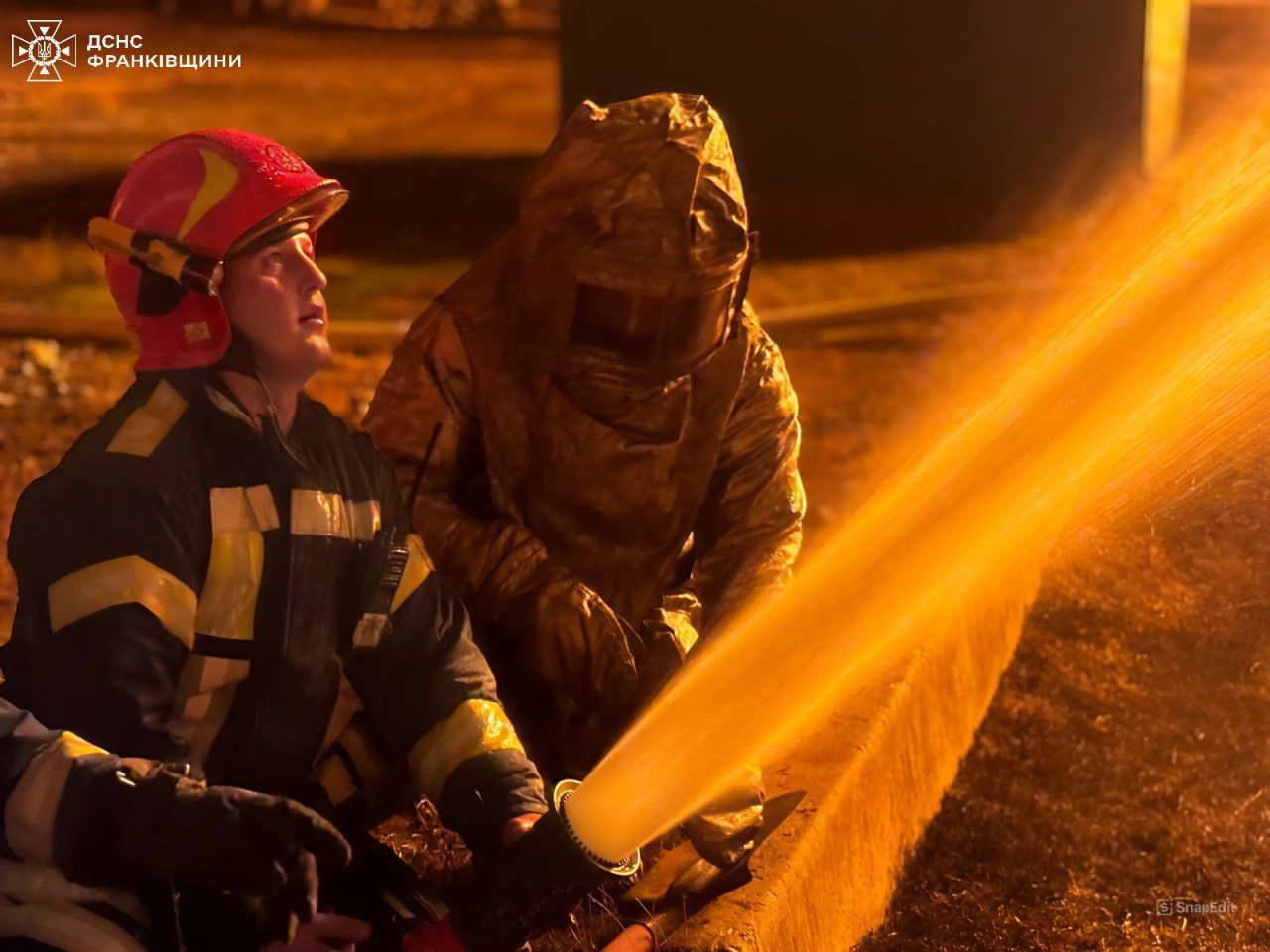 В ДСНС розповіли, що в Івано-Франківській області рятувальники ліквідували пожежу на промисловому підприємстві, яка виникла внаслідок ворожої атаки.
