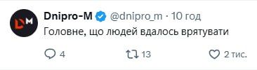 Пізніше Михайло Лавровський у соцмережі Х написав допис, у якому перепросив у Dnipro-M, що "позичив" болгарку.