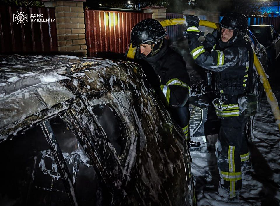 Рятувальники повідомили, що упродовж ночі декілька разів виїжджали на виклик для гасіння пожеж унаслідок падіння уламків збитих "Шахедів. Зокрема, у селі Софіївська Борщагівка сталося загоряння легкового автомобіля.