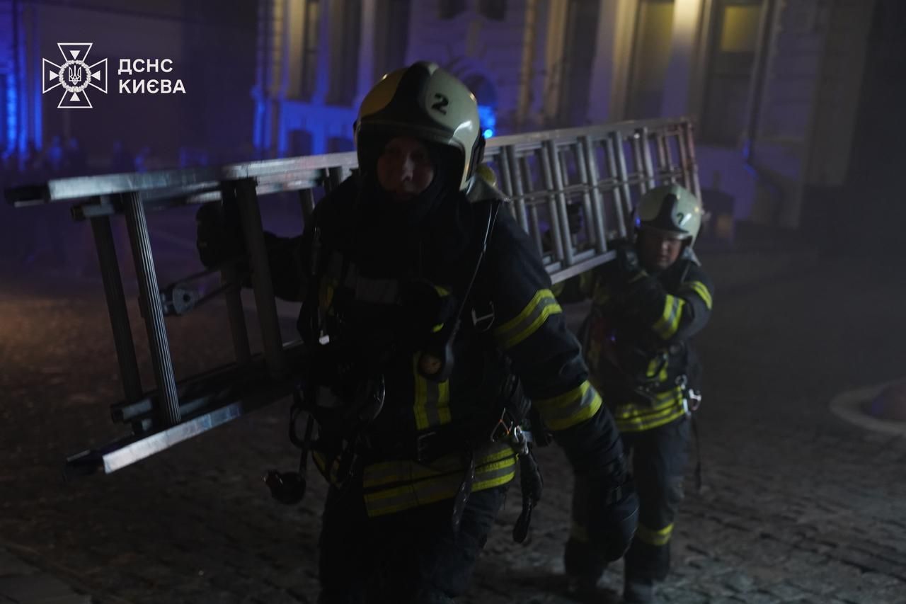 У Києві у житловому будинку спалахнула пожежа внаслідок атаки / Фото ДСНС України