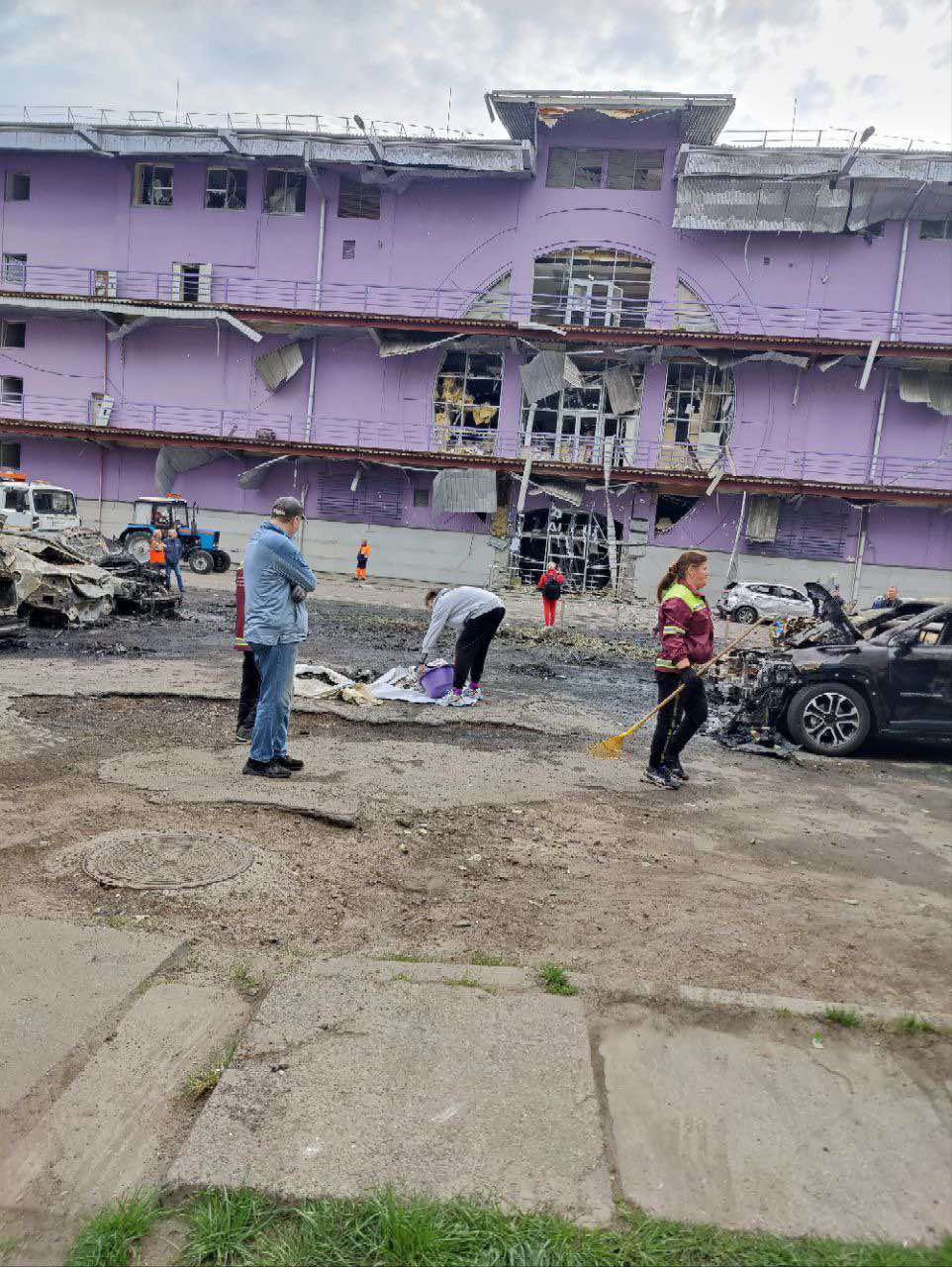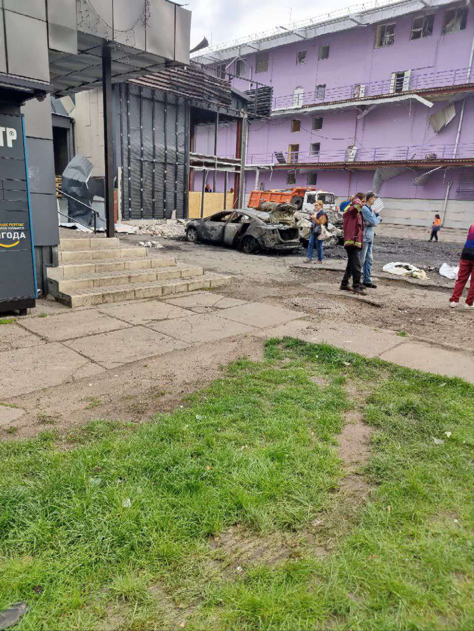 Окрім житлових будинків, пошкоджено також вхід до супермаркету, магазин і один з входів до ТРЦ.