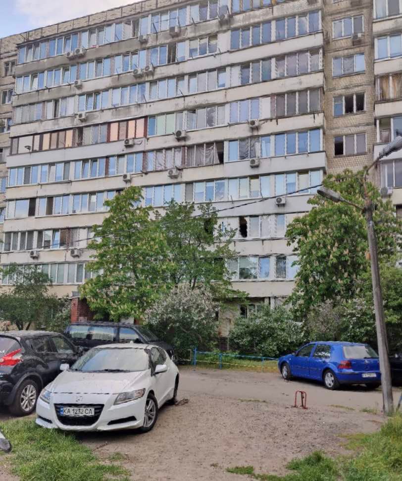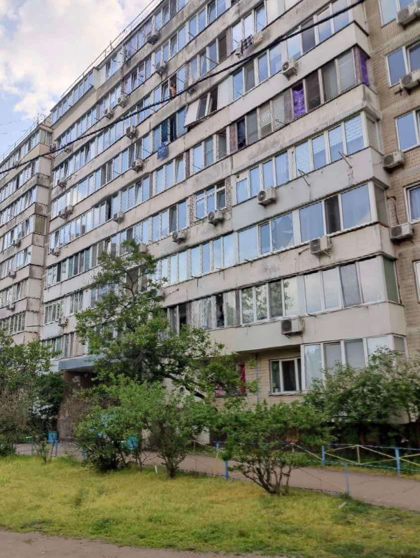 Пошкодження багатоповерхівок та дитсадка у Києві після атаки / Фото Льва Шевченка, 24 Канал