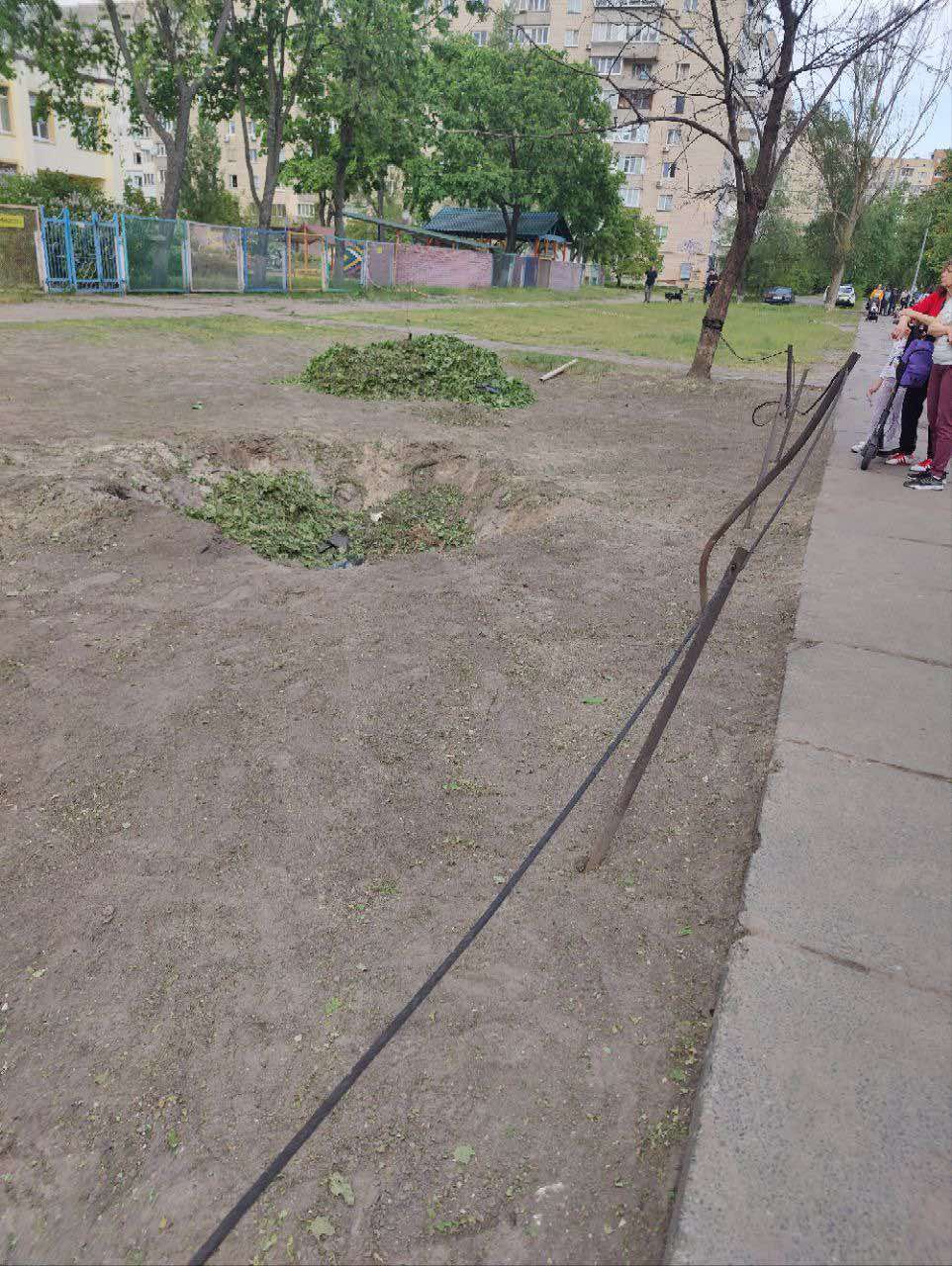 Також в одному з районів Києва можна помітити величезну вирву внаслідок падіння уламків "Шахеда".