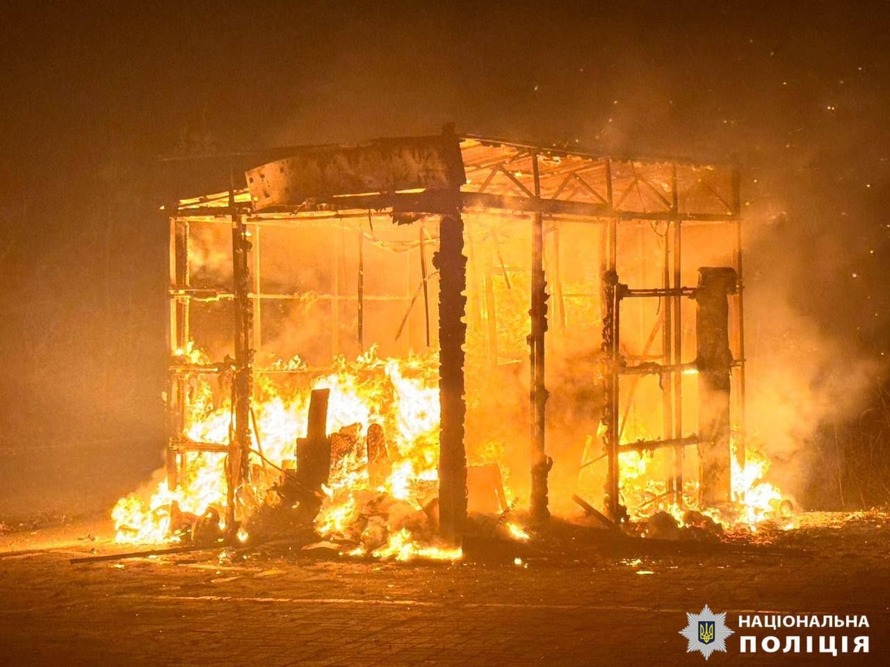 У Національній поліції також розповіли про пошкодження та показали наслідки падіння уламків. Так, пошкоджено щонайменше 6 приватних будинків та 4 автомобілі.
