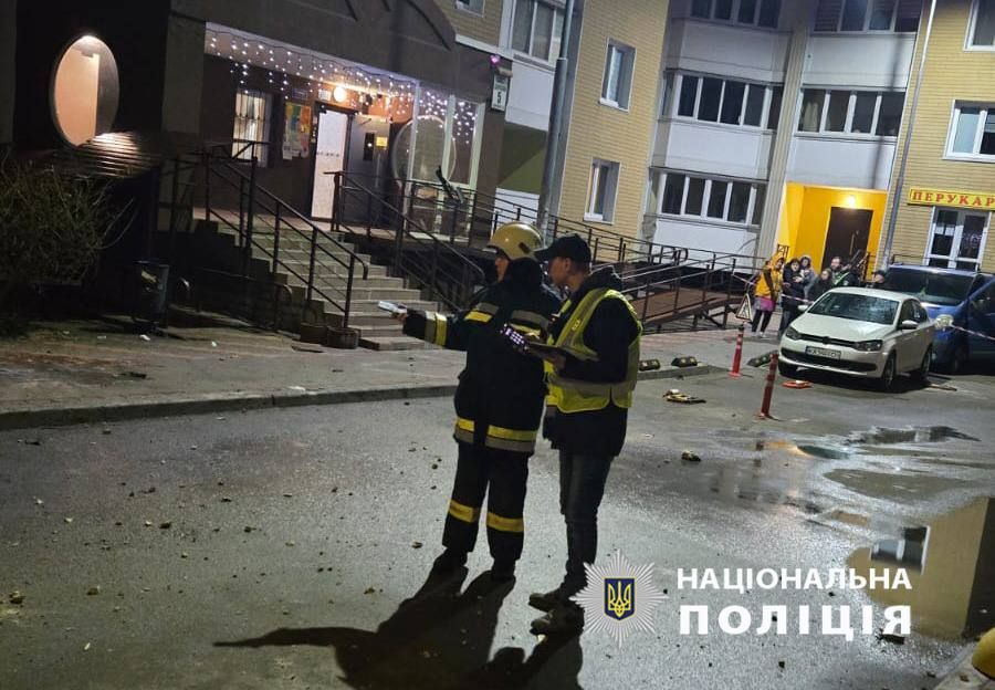Через ворожу атаку БпЛА на Київ сталися руйнування в кількох районах. На місцях поліцейські документують наслідки обстрілу, а також працюють вибухотехніки та рятувальники ДСНС.