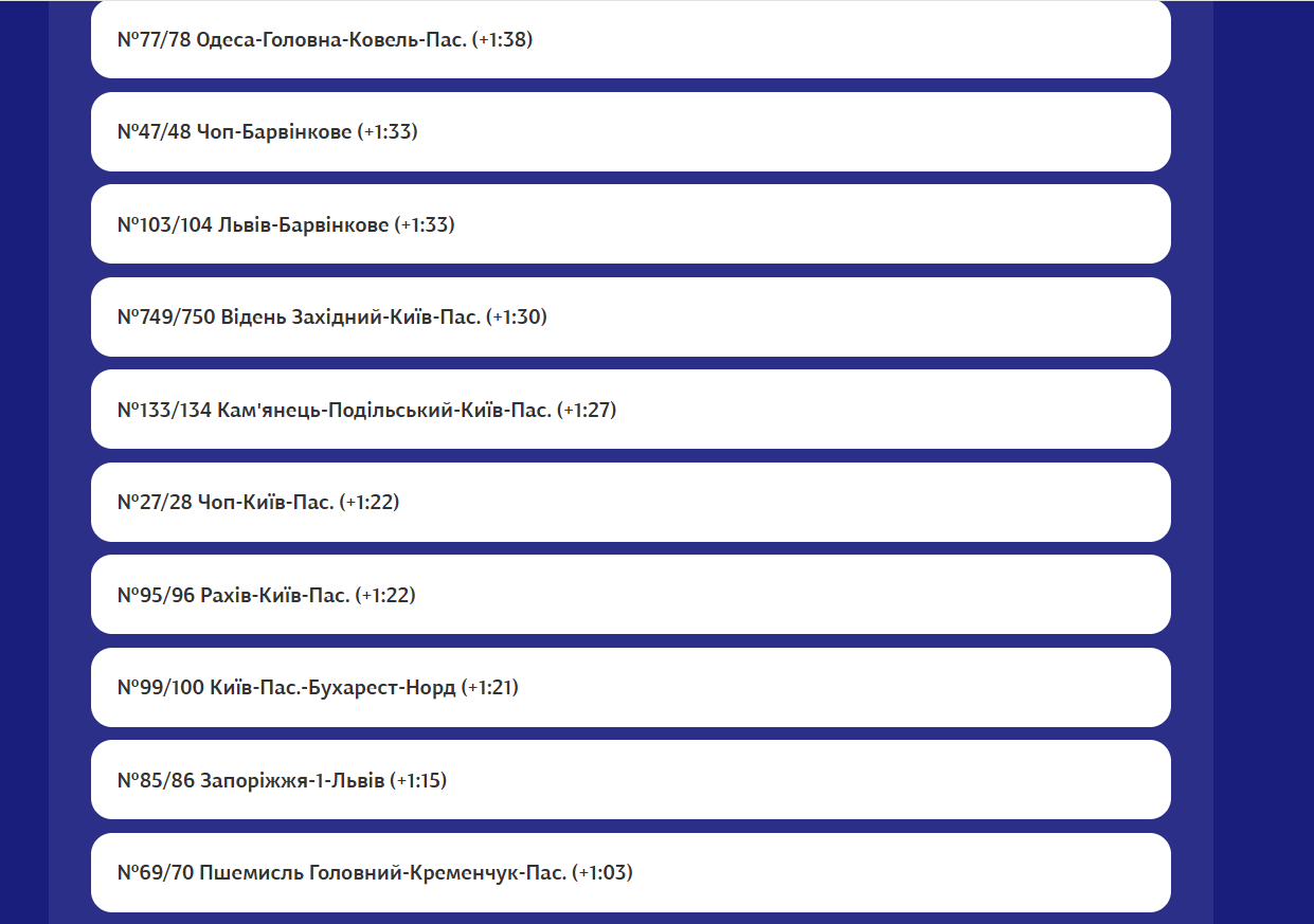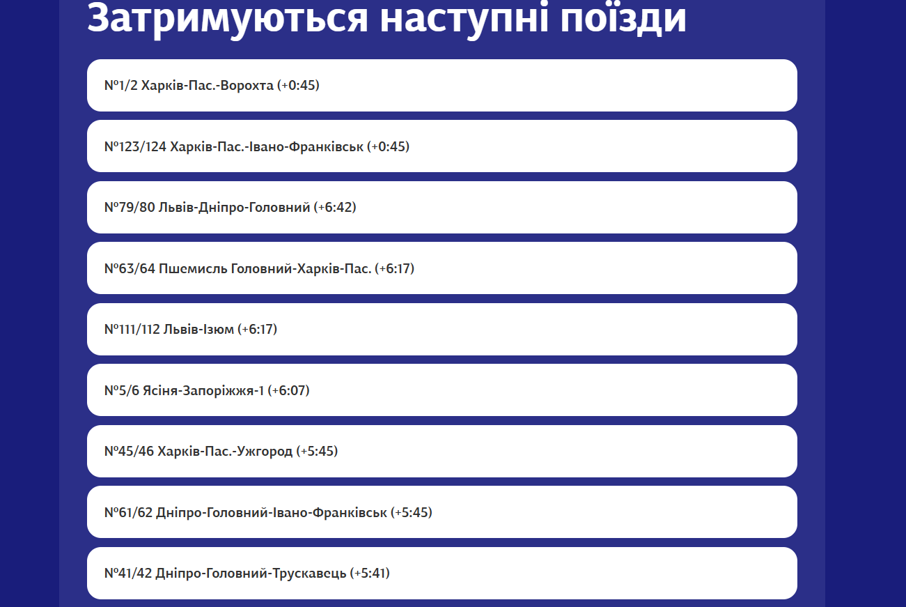 Найбільш відчутно запізнюються наступні поїзди: