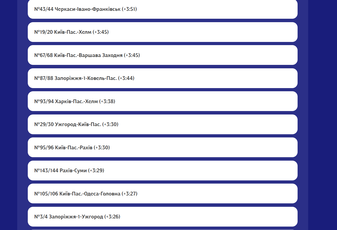 - 45/46 Харків – Ужгород (+5:45);