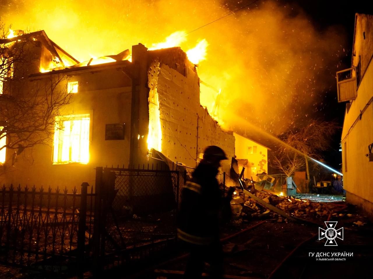 Перед 6 годиною ранку глава Львівської ОВА та міський голова Львова повідомили про падіння уламків "Шахеда" у Дублянах. Там горів дах гуртожитку, на місці працювали пожежники. За попередніми даними, люди не постраждали.