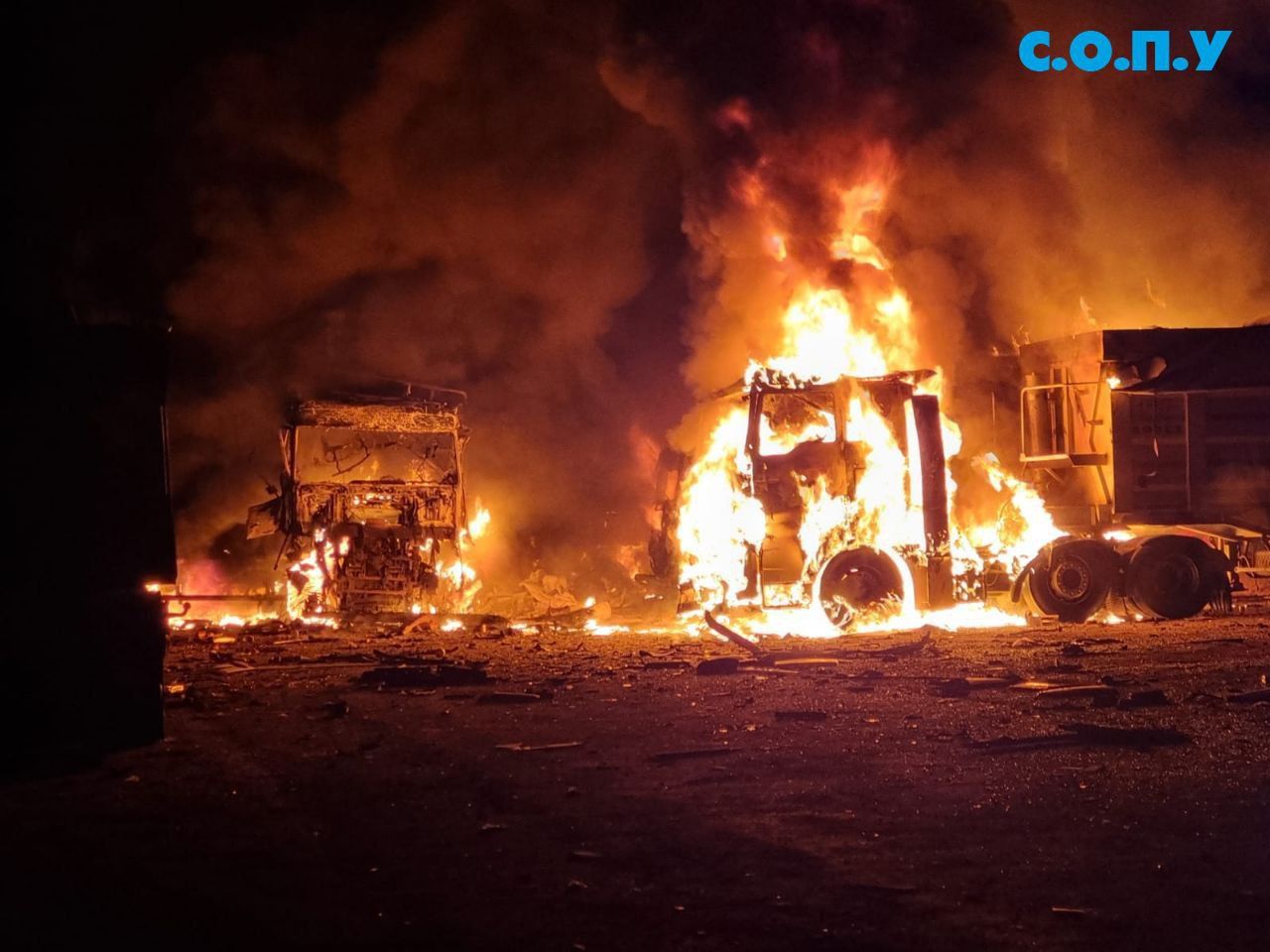 На оприлюднених кадрах можна побачити, що було пошкоджено об'єкти припортової та цивільної інфраструктури, а також стоянка вантажного автотранспорту.