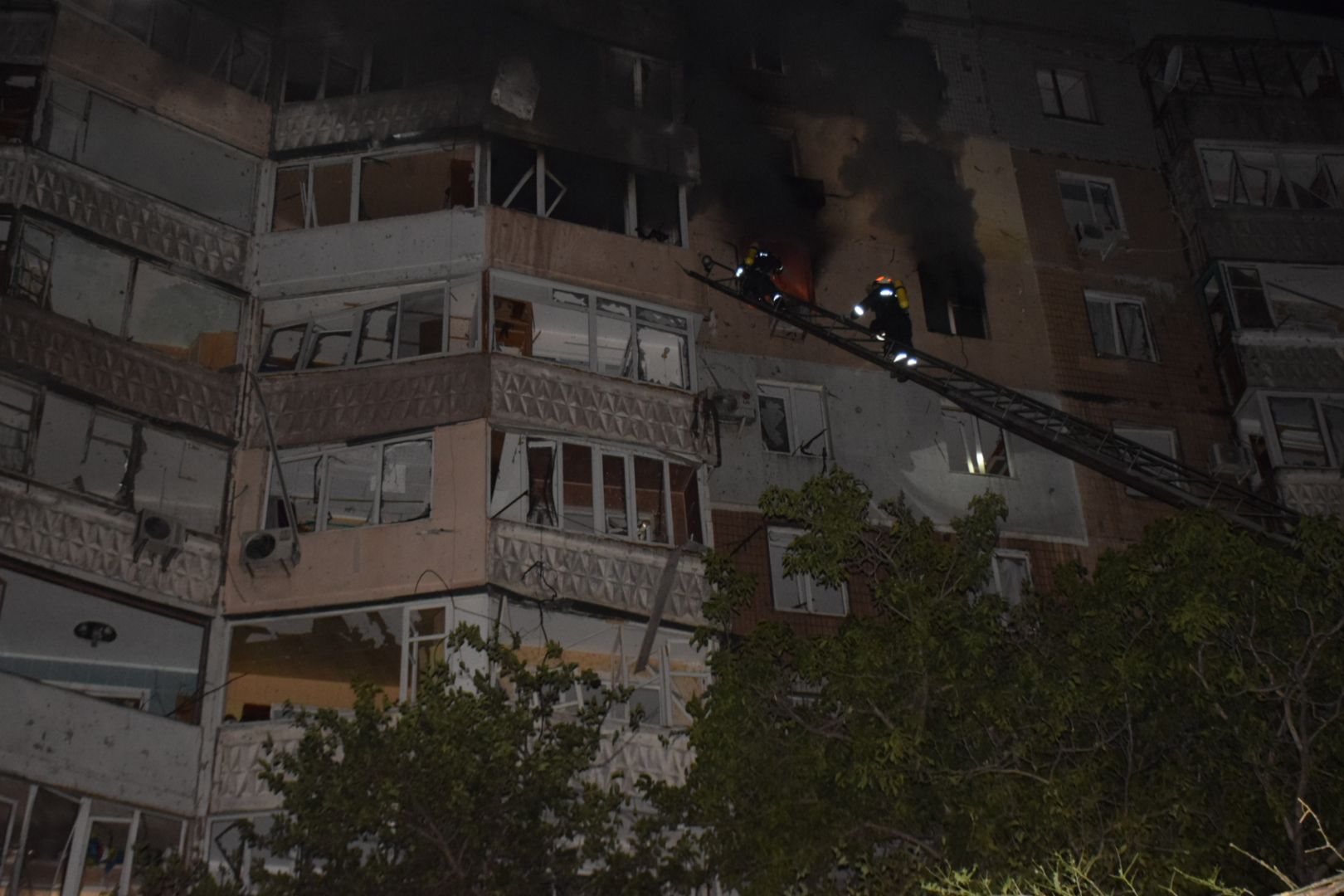У ДСНС повідомили, що вночі в Одесі ліквідували пожежу, яка сталася внаслідок влучання уламків дрона. Під час гасіння врятували 12 мешканців будинку. На місці події допомогу людям надали психологи.