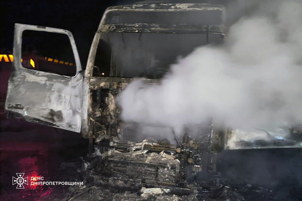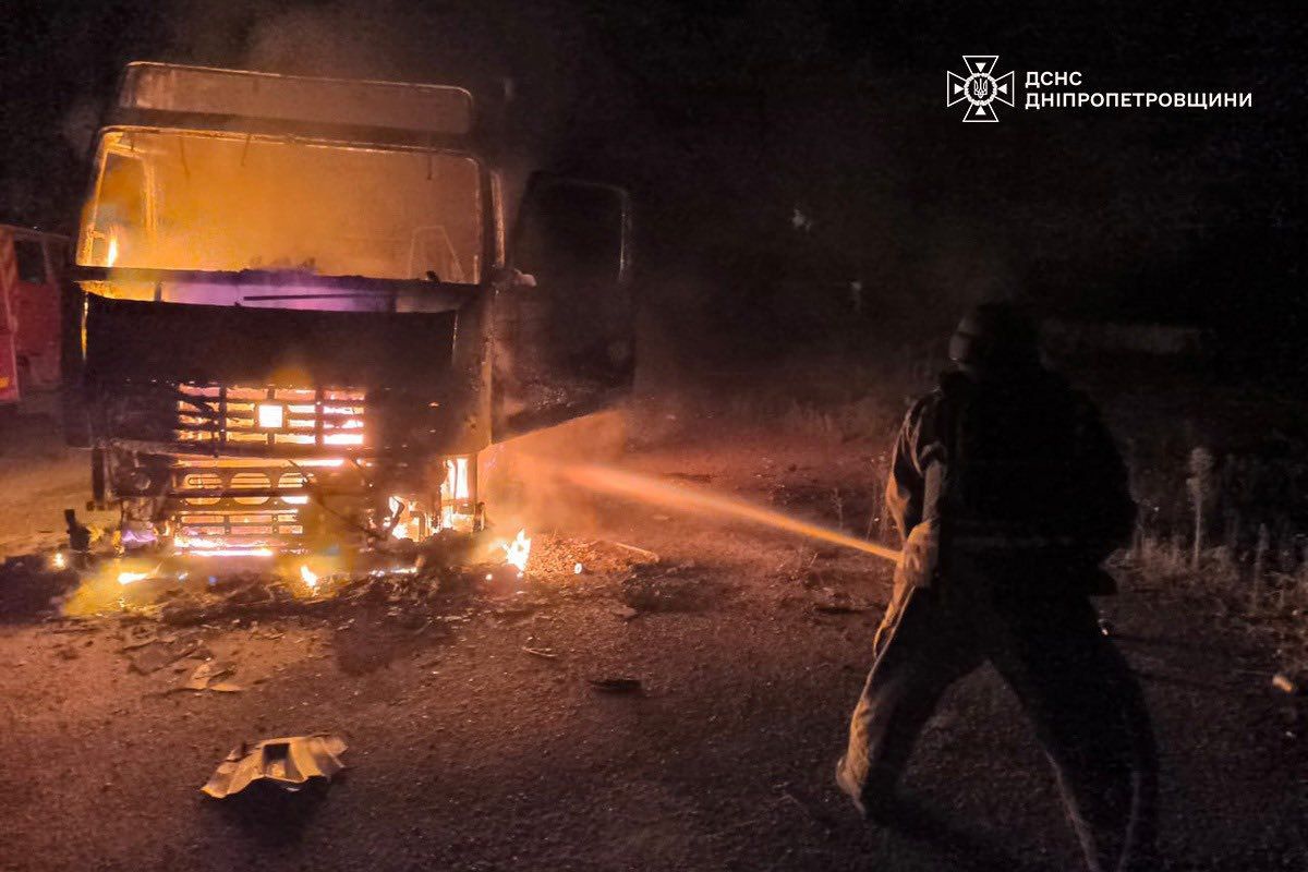 Унаслідок російського дронового удару по одному з сіл Дніпропетровщини загорівся вантажний автомобіль. Згодом ворог цілеспрямовано атакував повторно – під час гасіння пожежі рятувальниками.