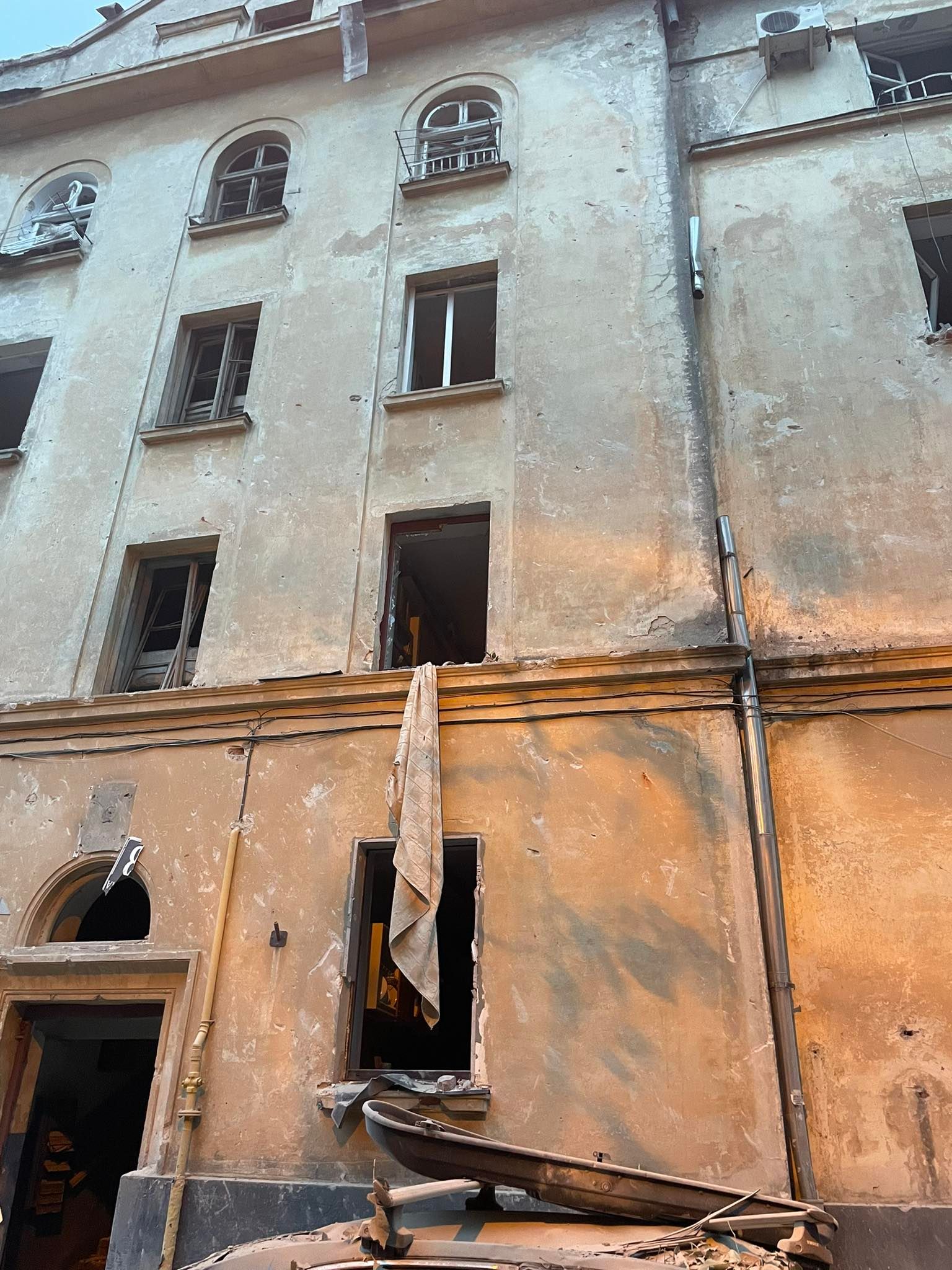 На відео з місця події помітно, що найбільших руйнувань зазнав останній поверх будинку. Усі квартири залишилися без вікон, а у дворі будинку багато завалів.