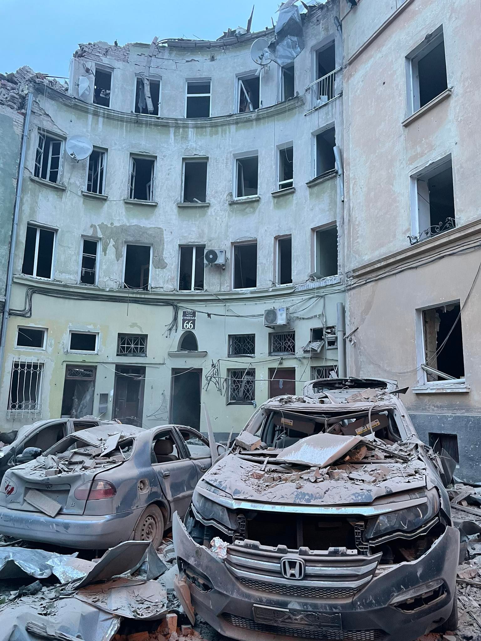 Також унаслідок влучання російської ракети пошкоджень зазнали близько 60 квартир, 50 автомобілів та 18 дахів. Разом з тим є руйнування: