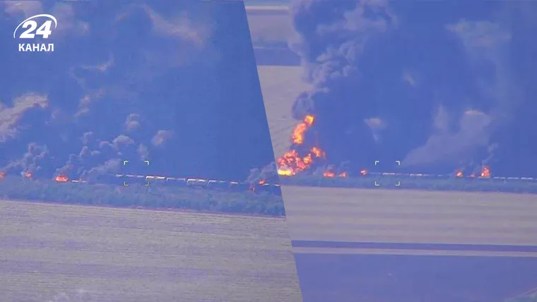 Зазначається, що спочатку військові на землі зупинили потяг із паливом на тимчасово окупованій території, після чого оператори дронів влучно підпалили його. Для цього використали спеціальні засоби, здатні вражати цілі на великій відстані.