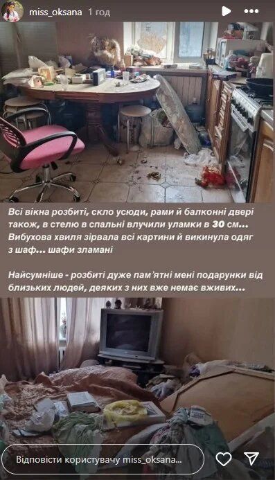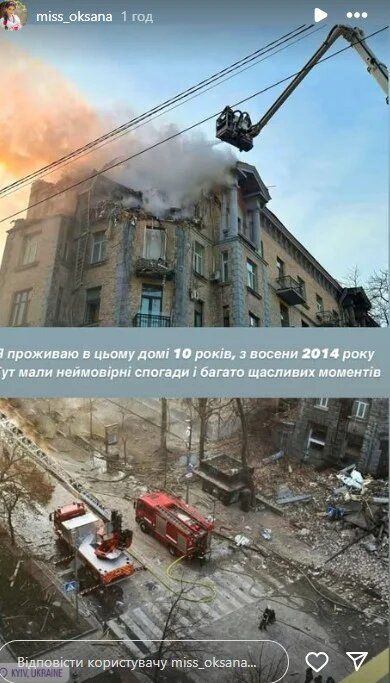 Натомість двоє сусідів загинули, а ще 6 зазнали поранень. Фотографиня також розповіла, що перший підʼїзд має повністю зруйновані два верхніх поверхи, другий, той, де розташована її квартира, має вибиті вікна і пошкоджені стелі, вибухова хвиля розкидала весь одяг, речі, важливі мені памʼятні подарунки.