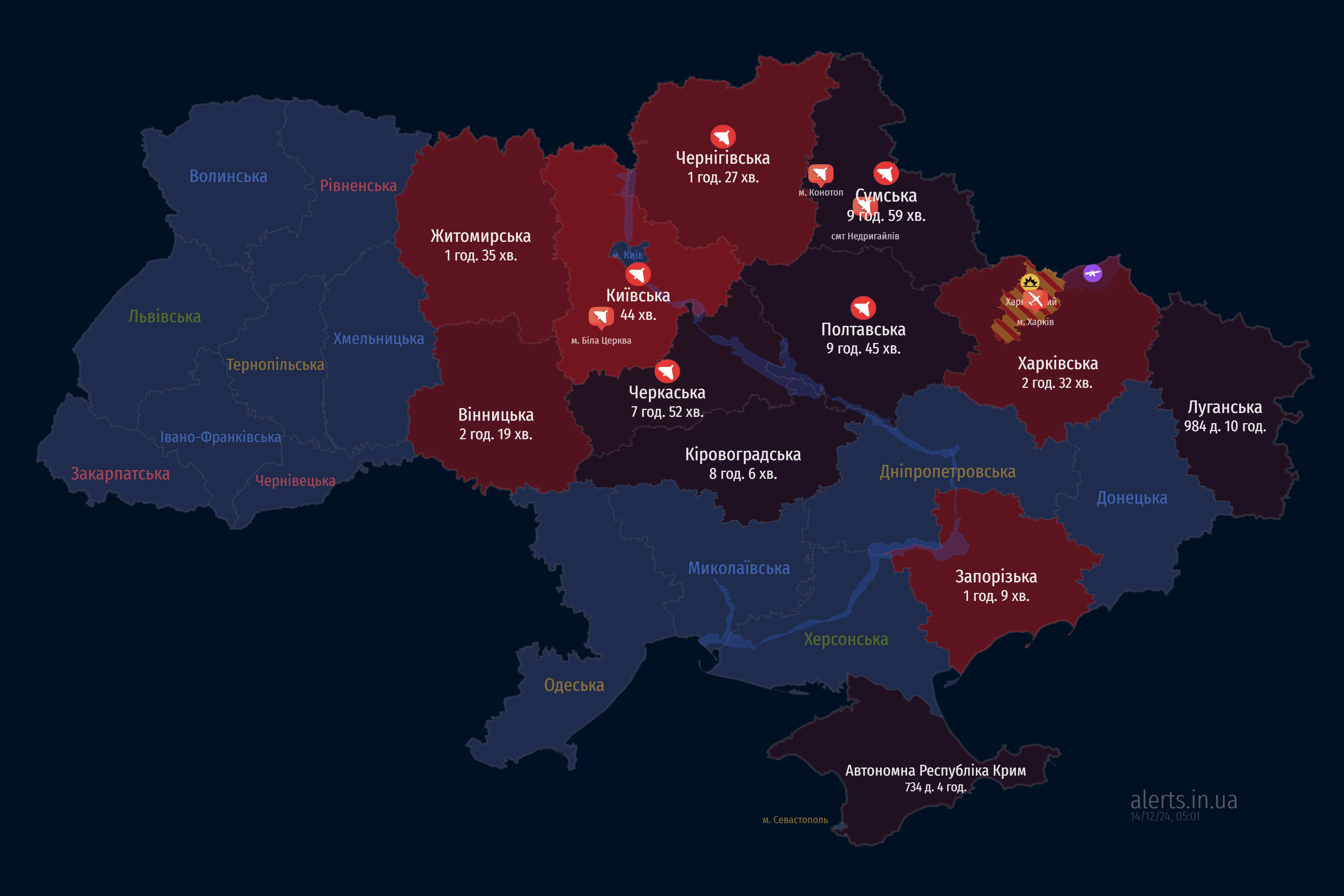 - БпЛА з Черкащини та Чернігівщини на Київщину.