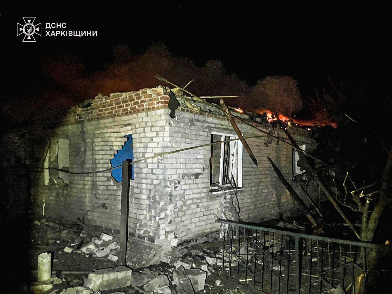 У ДСНС Харківщини розповіли, що вночі російські війська завдали ударів безпілотниками по селищу Великий Бурлук Куп'янського району.
