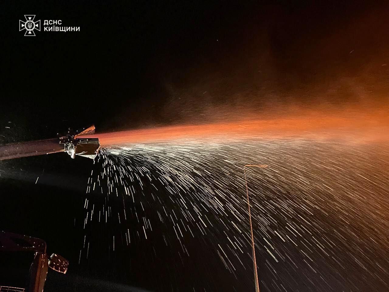 Вночі 27 лютого в одному з районів Київщини внаслідок падіння уламків безпілотника спалахнула пожежа на промисловому об'єкті. Її вже ліквідували. На місці працювали 81 рятувальник і 24 одиниці техніки.