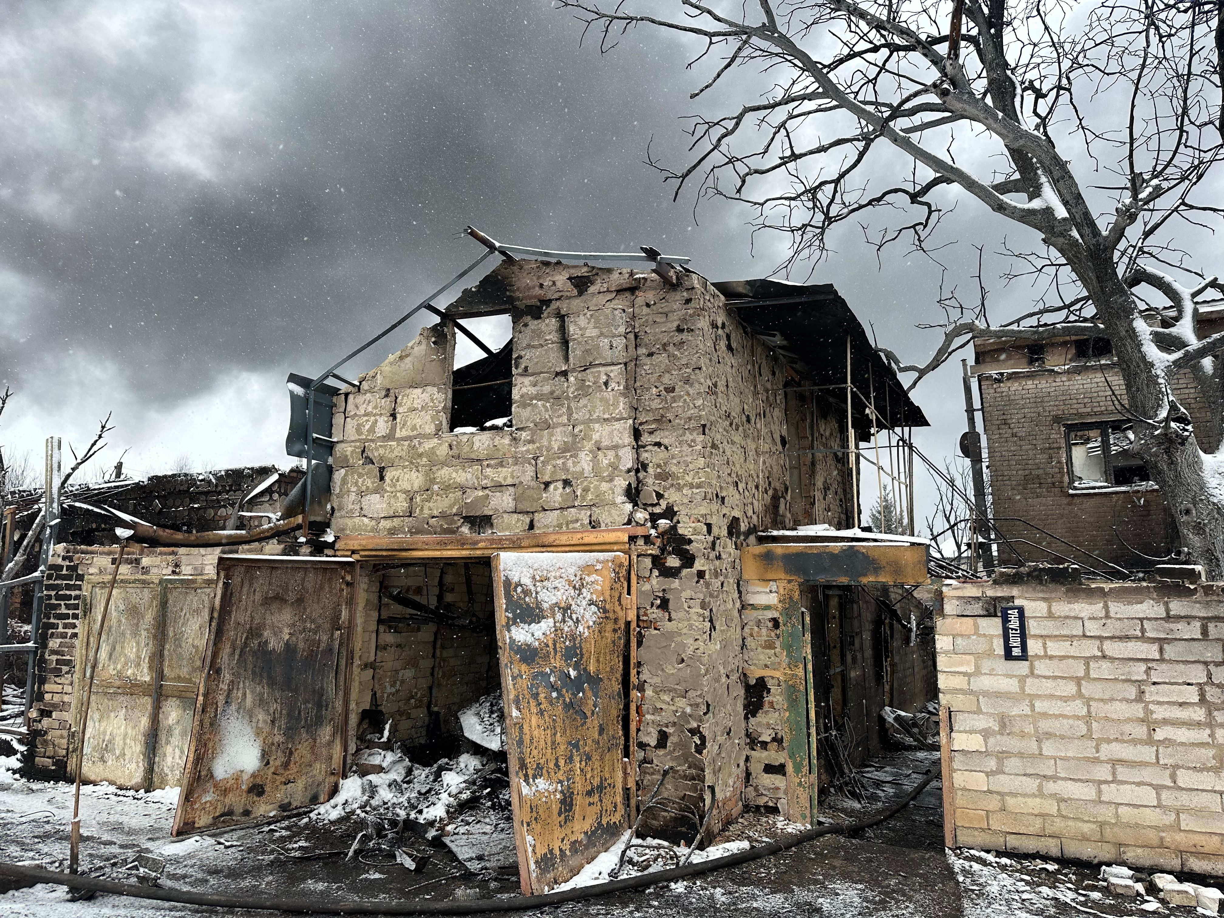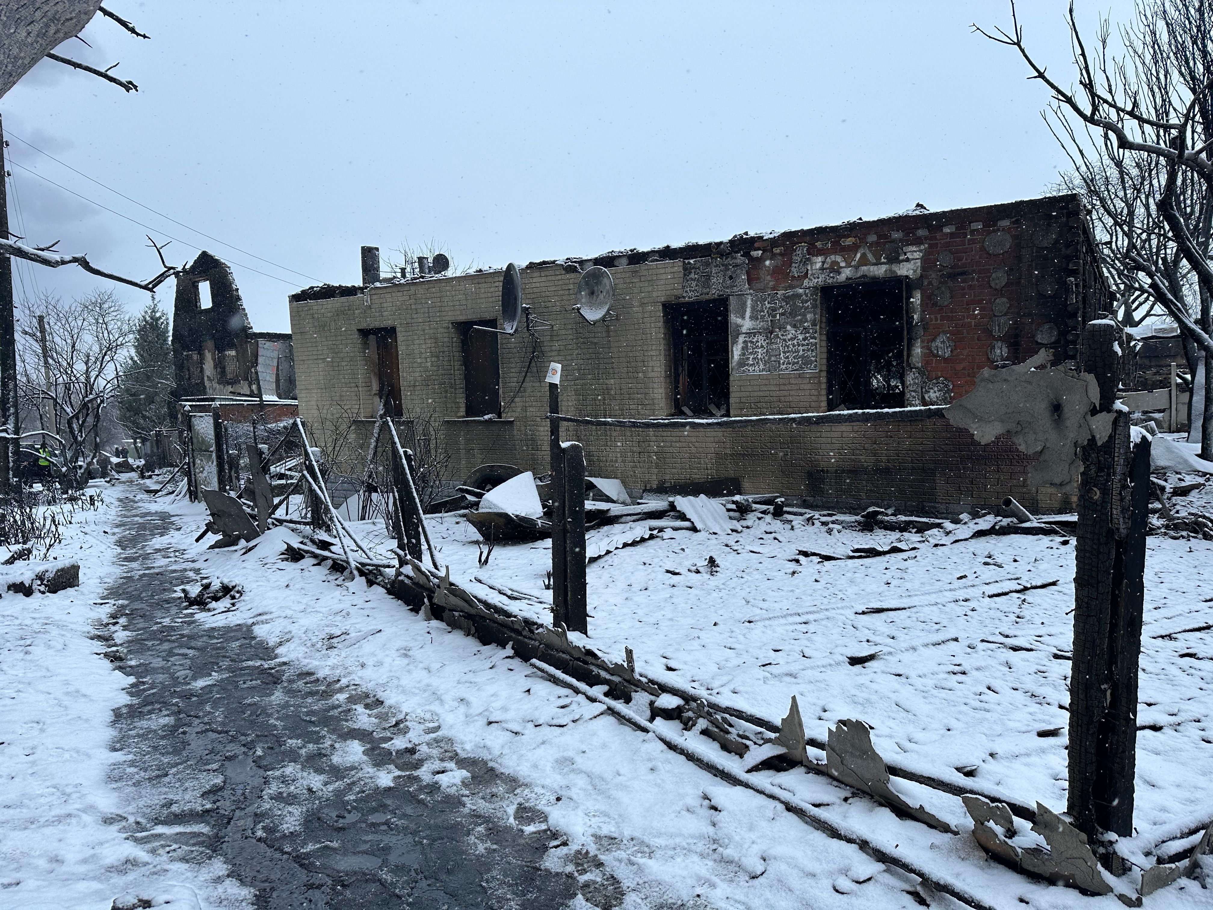 Який вигляд має згоріла вулиця вранці 10 лютого / Фото Анни Черненко