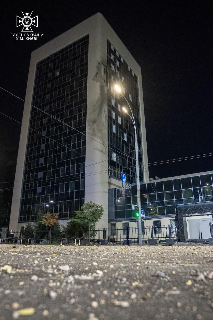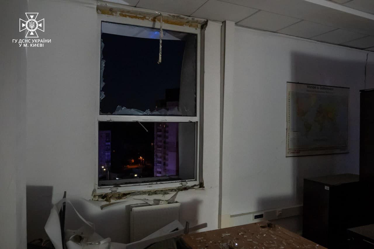 Сьогодні вночі (2 серпня – 24 Канал) ворог здійснив чергову атаку на Київ. Попередньо, падіння уламків зафіксовано у Солом'янському районі міста. Відтак, пошкоджено фасад адміністративної будівлі з 9 по 11 поверх,