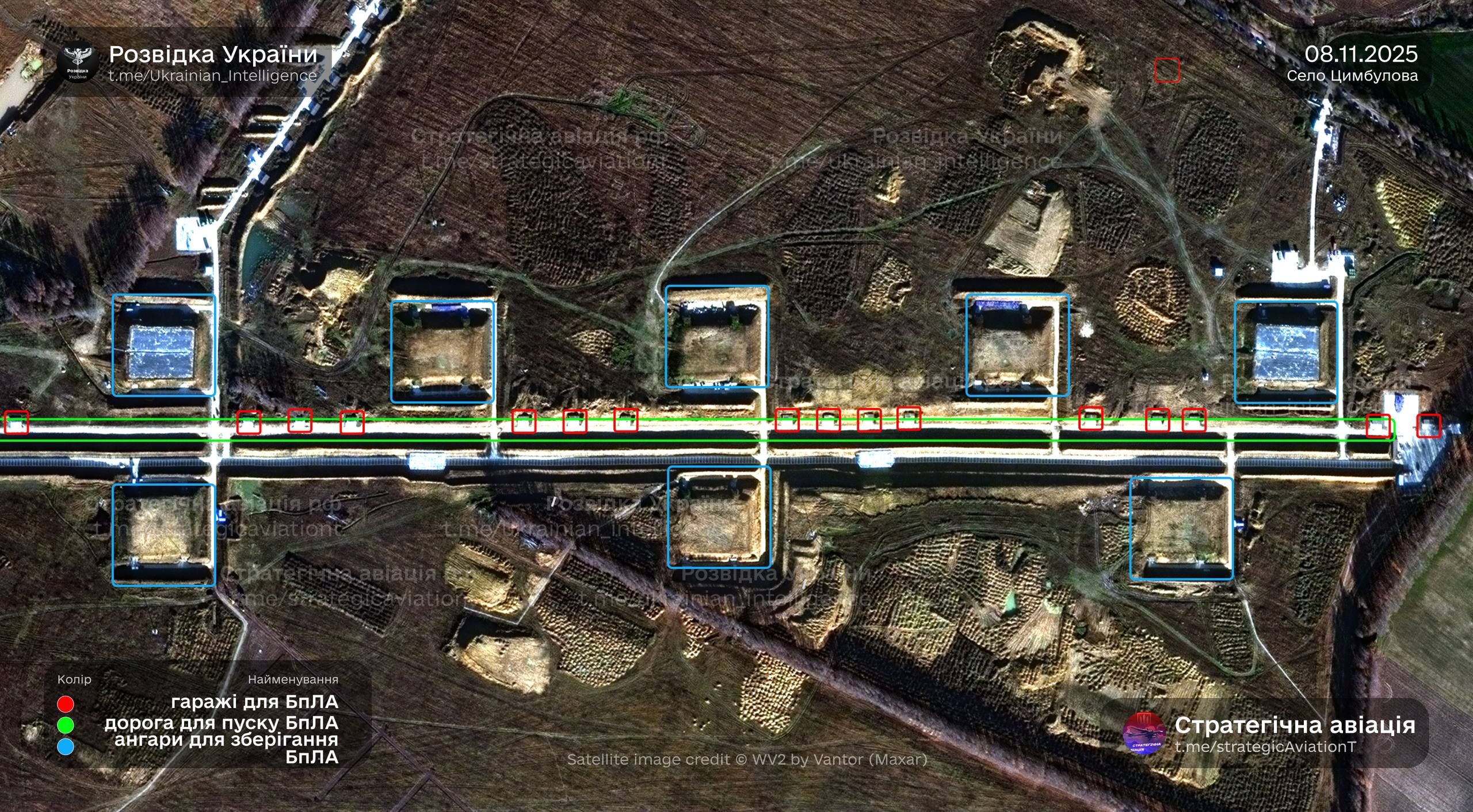 За даними аналітиків, у Цимбуловій розташовані щонайменше 93 гаражі та 15 ангарів для зберігання дронів. У деяких із них безпілотники вже були помічені.