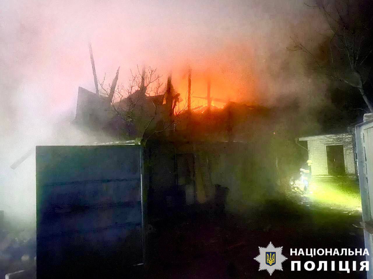 Поліцейські зазначають, що внаслідок ударів БпЛА по території Київської області пошкоджено господарське та гаражне приміщення в одному з районів. Пожежу, яка зайнялася на місці влучання, рятувальники швидко ліквідували.