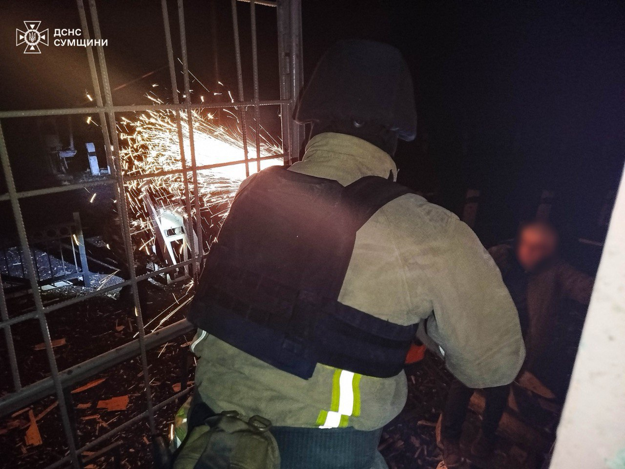 У ДСНС розповіли, що із пошкодженої нежитлової будівлі вдалося витягнути цивільну жінку, яка опинилася під завалами. Для цього рятувальникам довелося різати металеві конструкції. Постраждалу передали медикам для надання необхідної допомоги.