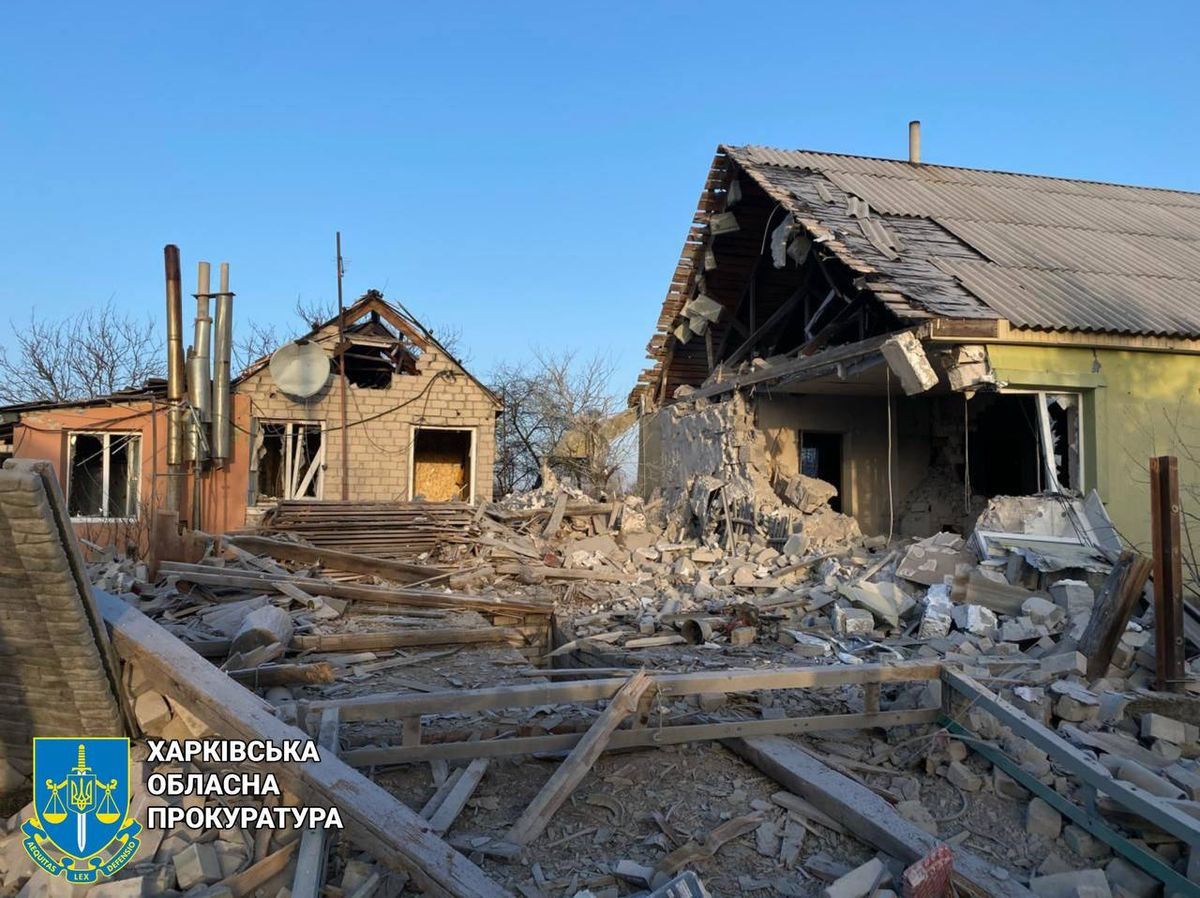 Наслідки удару по будинку у Великому Бурлуці / фото Харківської обласної прокуратури