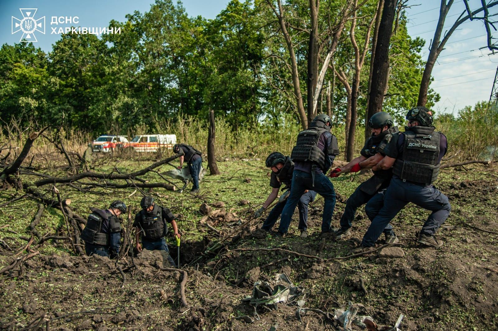 Сапери знищили залишки ворожої ракети у Харківській області / Фото ДСНС