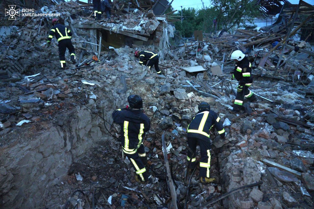 До ліквідації наслідків удару Росії в Хмельницькій області залучено 38 рятувальників. Психологи ДСНС надають допомогу постраждалим.