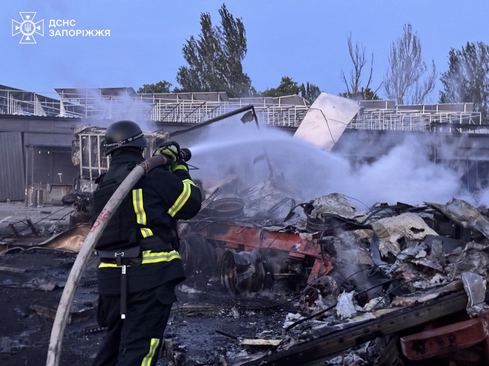 Внаслідок російських ударів сталася пожежа трьох виробничих будівель на загальній площі 800 квадратних метрів та 47 автомобілів на відкритому майданчику. Рятувальники ліквідували загоряння, провели розбір та проливку конструкцій.