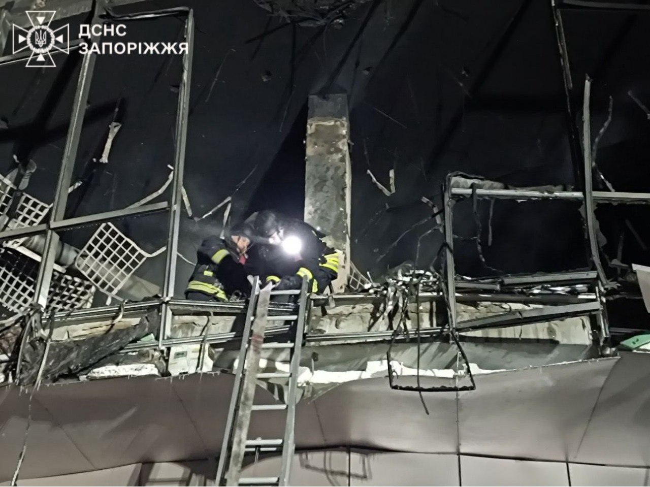 Друга атака сталася близько 02:00 2 січня. Спалахнув торговий центр. Рятувальники оперативно ліквідували пожежу, а сапери ДСНС обстежили територію на наявність небезпечних уламків безпілотників.